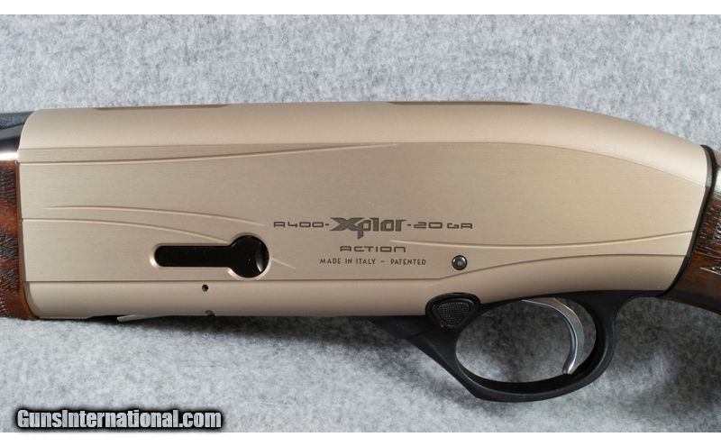 Description: Beretta A400 Xplor 20 gauge shotgun. Factory box and Chokes included. Bronze color receiver, blued barrel, Nice walnut furniture. A very nice 20 gauge shotgun. 20 Gauge SOLD Chambers: 20 gauge 3 Metal Condition: Very Good Wood Condition: Very Good Bore Condition: Bright Barrels: 28" Vent Rib Stock Dimensions: 14-1/2 Fore End: Walnut Butt Pad: Walnut w/ Recoil reducing factory recoil pad Sights: Day Glo front Chokes: Beretta interchangeable Item Location: short pump |