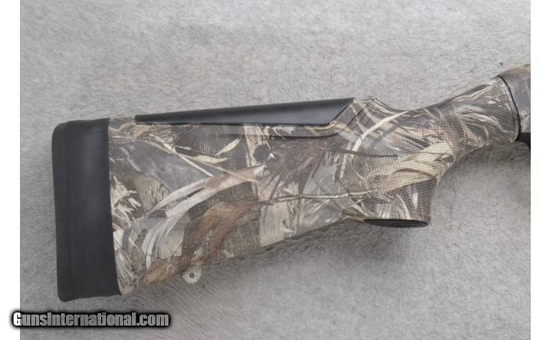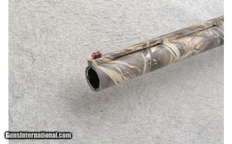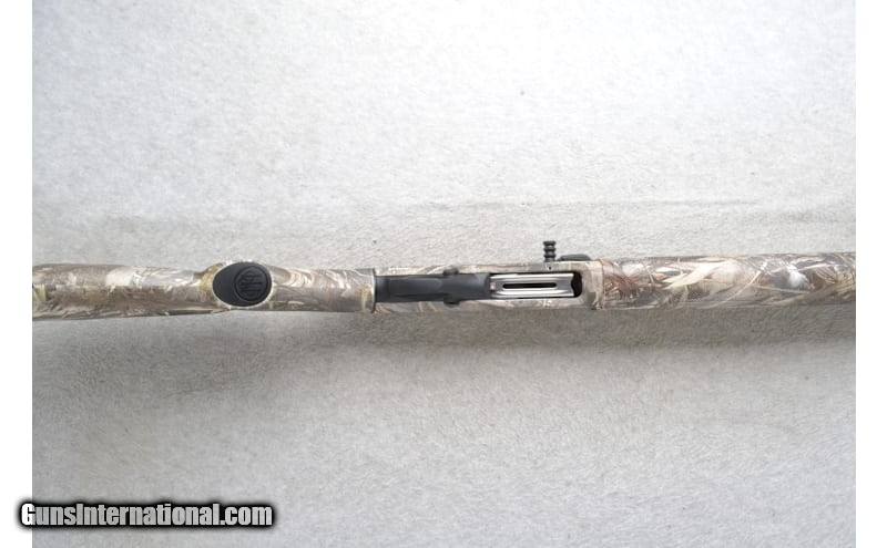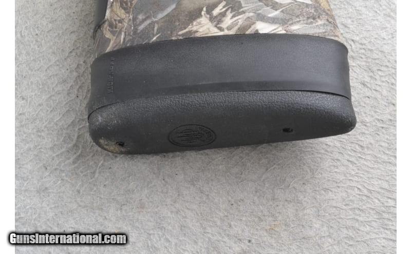 Description: This Beretta Model A300 Ultima is a right-hand semi auto shotgun in 12 Gauge. It has a 28" ventilated rib barrel with a red high visibility front sight, metal bead middle sight and a Modified Mobil choke tube. It is chambered for 3" shells. The forearm is textured camo polymer with finger grooves and the buttstock is a textured grip camo polymer grip with a black rubber buttstock. 12 Gauge. 12 Gauge SOLD Chambers: "3"" chamber, 3 round tubular magazine Metal Condition: Excellent Bore Condition: Excellent Barrels: 28" ventilated rib barrel Stock Dimensions: LOP 14 Fore End: Textured camo polymer with finger grooves Butt Pad: Black rubber butt pad Weight: 7.5 lbs. Sights: "Red high visibility front sight, metal post middle sight Chokes: "Modified choke, Mobil choke system Item Location: Richfield, WI |