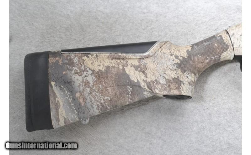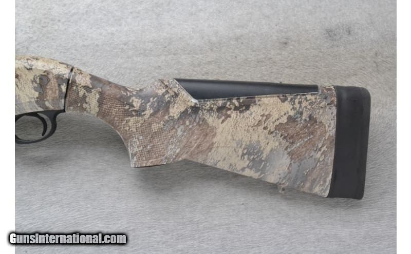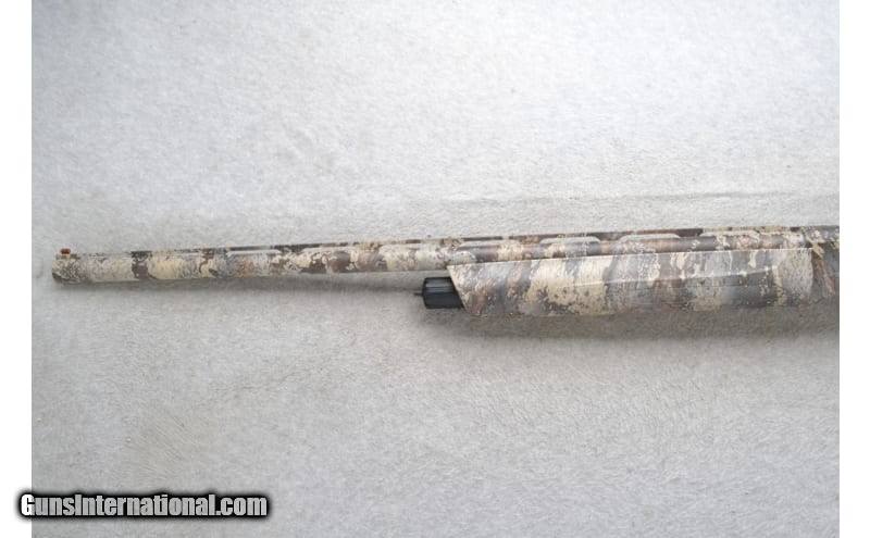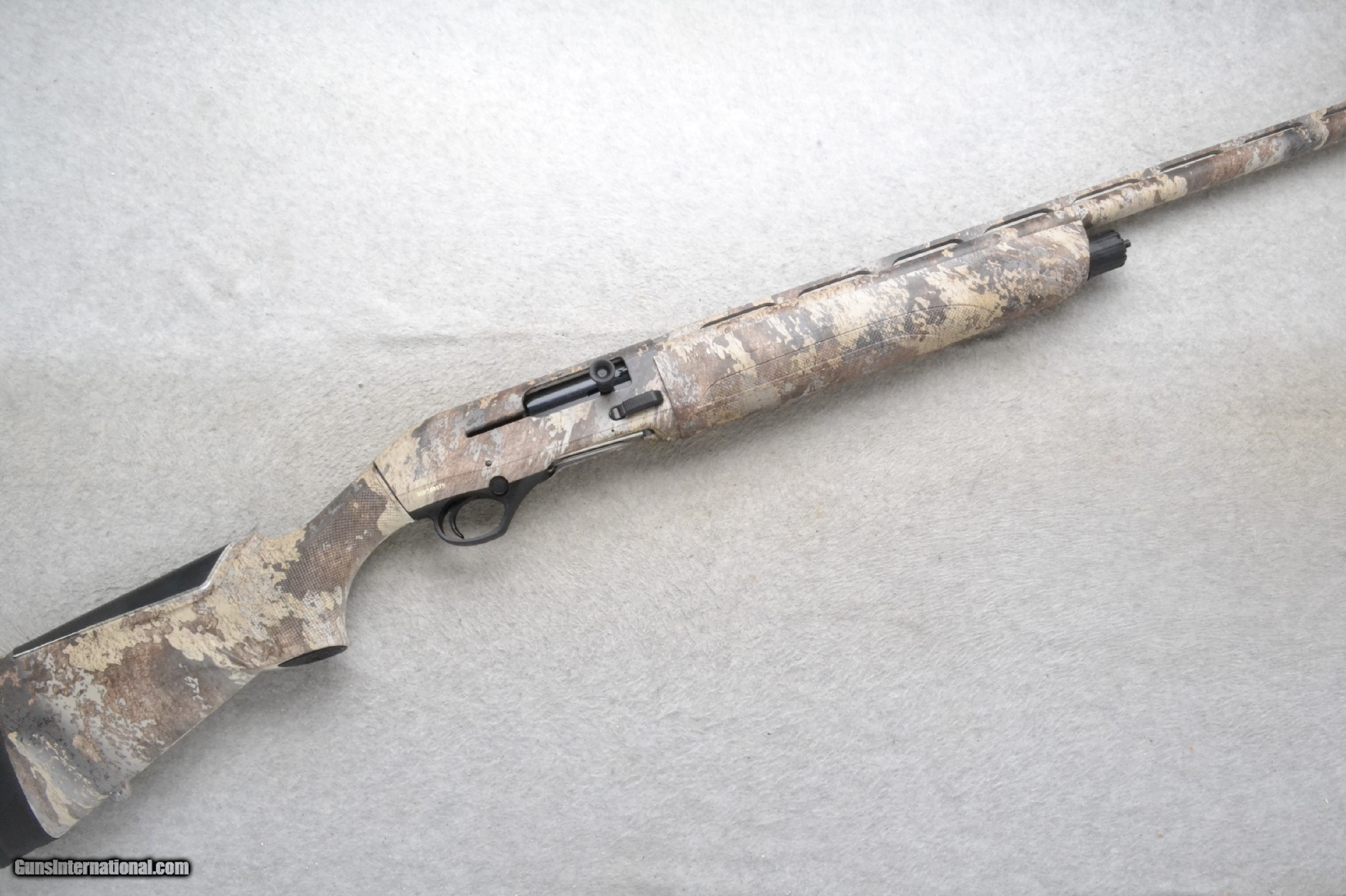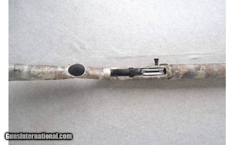 Description: This Beretta Model A300 Ultima is a right-hand semi auto shotgun in 12 Gauge. It has a 28" ventilated rib barrel with a red high visibility front sight, metal bead middle sight and a Modified Mobil choke tube. It is chambered for 3" shells. The forearm is textured camo polymer with finger grooves and the buttstock is a textured grip camo polymer grip with a black rubber buttstock. 12 Gauge. 12 Gauge SOLD Chambers: "3"" chamber, 3 round tubular magazine Metal Condition: Excellent Bore Condition: Excellent Barrels: 28" ventilated rib barrel Stock Dimensions: LOP 14 Fore End: Textured camo polymer with finger grooves Butt Pad: Black rubber butt pad Weight: 7.5 lbs. Sights: "Red high visibility front sight, Metal bead middle sight Chokes: "Modified choke, Mobil choke system Item Location: Richfield, WI |