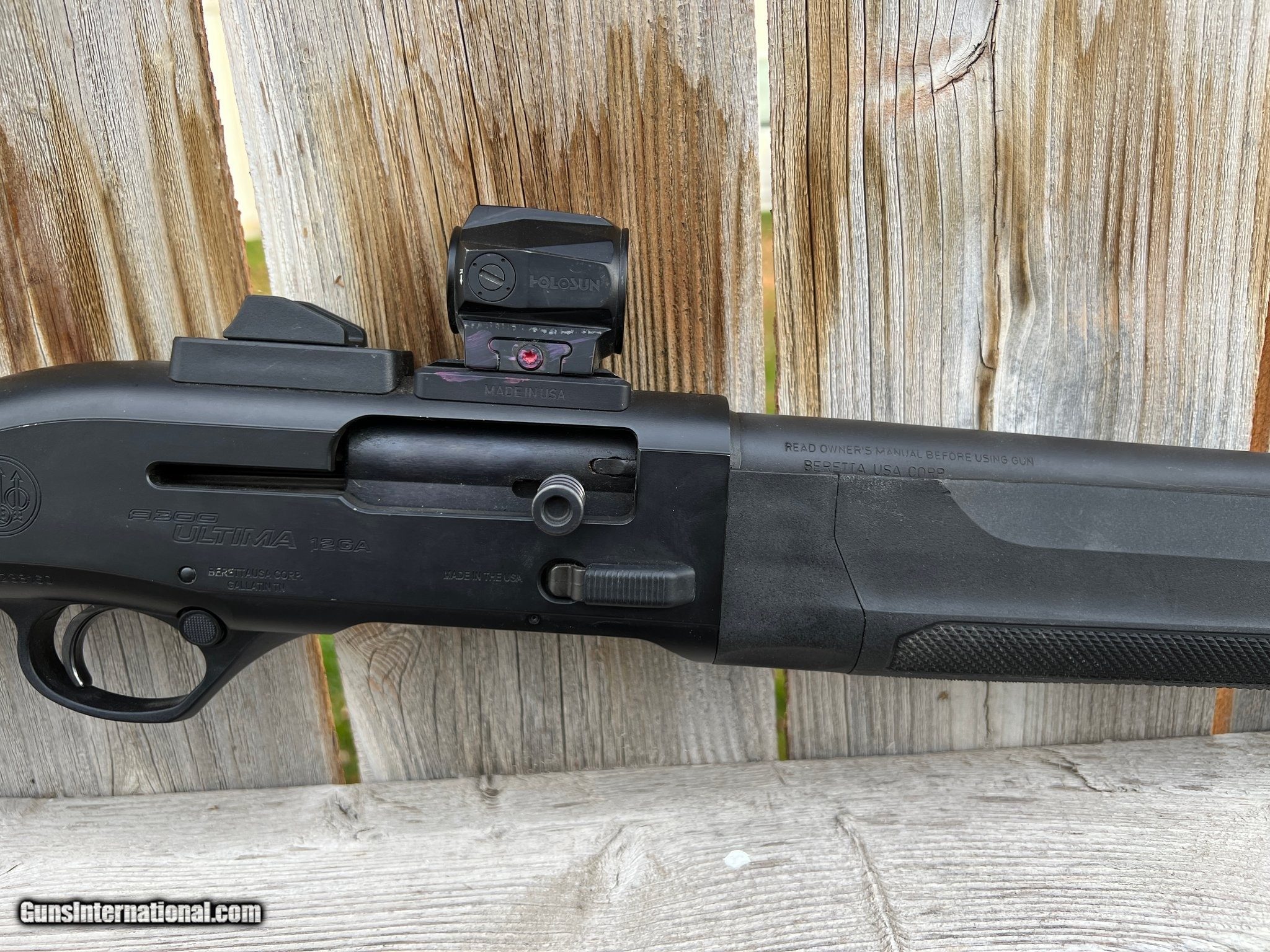 Description: Guns Listing ID: 596243 Up for sale is a Beretta A300 Ultima Patrol, one of the most reliable and low-recoil tactical semi-auto shotguns on the market. This model is Beretta’s duty-ready defensive platform with upgraded controls, enlarged loading port, extended magazine tube, and M-Lok mounting options. This shotgun has been mounted with a Holosun SCRS, one of the most durable solar-powered, closed-emitter red dots available. Zero maintenance + zero battery swaps = a perfect defensive shotgun setup. Features / Upgrades Holosun SCRS – solar charging, shake-awake, ultra-durable closed-emitter optic Factory M-Lok forend for lights, hand stops, or accessories Fiber-optic front sight + ghost ring rear Extended magazine tube (7+1) Oversized controls: bolt handle, bolt release, and safety for fast manipulation Recoil-reducing gas system for softer shooting QD sling attachment points front and rear Hook and loop field for quickly changing placards Condition Will show average wear to be expected from range trips Optic holds zero flawlessly. No major scratches or cosmetic damage Manufacturer: BERETTA Model: A300 ULTIMA PATROL Condition: Used - Non-Certified Barrels: 19" BARREL Action: SEMI AUTOMATIC Gauge: 12 GA Finish: black Price: $1,000.99 Contact Seller |