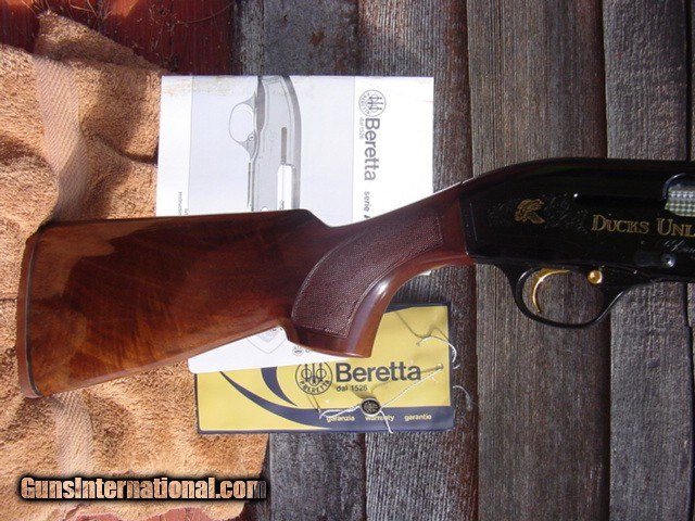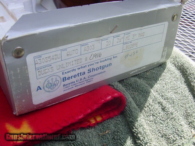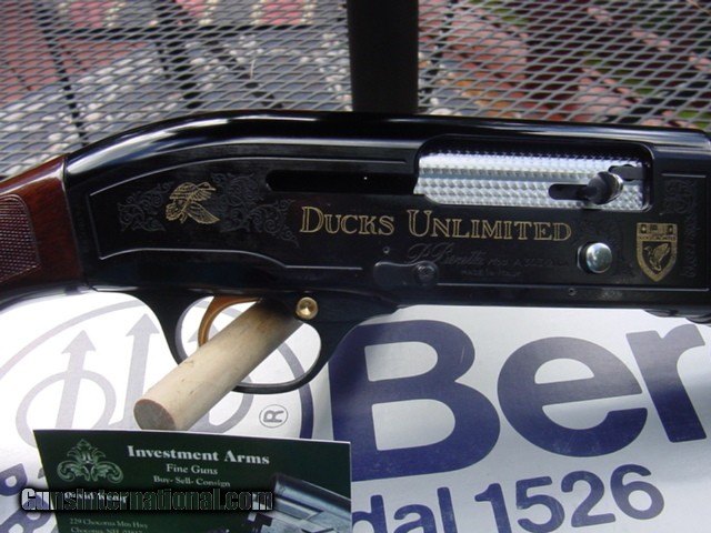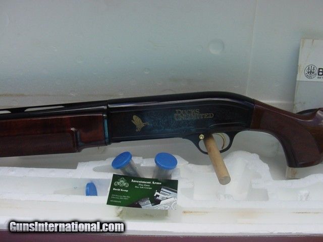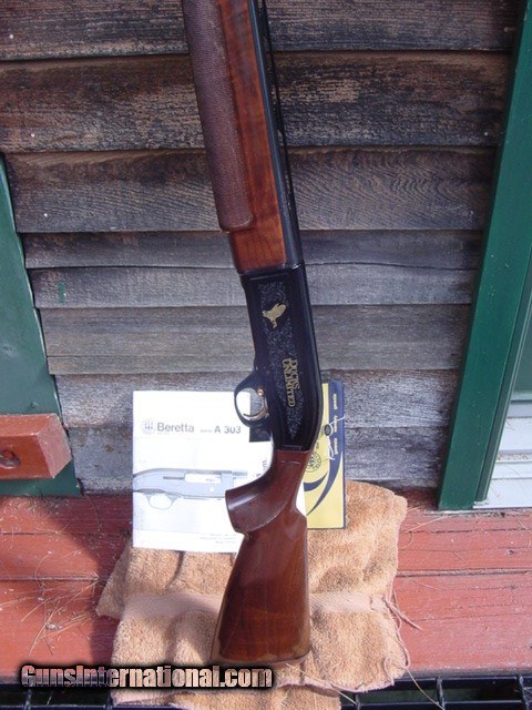 Description: SOLD ! Beretta A303 Limited Edition Ducks Unlimited 20 Ga ,26" barrle, Shotgun. This is a like new gun ,26" vent rib Beretta Mobile Choke-3 chokes included-IC,M and Full . Nice semi auto shotgun from 1987,has gold Mallard and Ducksunlimited along with some scroll on the reciver.nice select Walnut stock,gol trigger and engine tunred bolt a carrier.S/N 87DU09xx.In factory box numbered to shotgun with papers,manual. Offered at $975 plus shipping insurance-should be around $45 insured to your FFL Happy to send along more pic’s, answer questions over phone or email. Please email your phone number so I can call back if I miss the call-do not have text sorry, thanks. Be sure to look at my other offerings for more guns,Merkel'sMannlicher Schoenauer's, Drillings, Combo's, Colt Saa's, Colt’s, Ruger’s, Browning’s,Kimber’s, Les Baer, Uberti'sby both Taylor and Cimarron, and Ferlib, Merkel G&H-Arrieta,Beretta,Parker Repro shotguns and other fine guns. Inventory always changing be sure to check with us for any needs. Local New Hampshire Buyer can view/purchase gun in person-after 4473/ NICS check, at Investment Arms business premise in New Hampshire Country Store, Rt 16 Chocorua NH. Please email/call 603.848.6184 Business or (603.323.8200 ) first to be sure its not sold. We also Buy and Consign Guns Payment by bank check, UPS money order-personal check held until clear 10 days. Buyer must provide dealers signed 01 FFL-email or hard copy, I will include a copy of my FFL with shipment. 3 day non firing inspection period(gun must be in same condition if returned)-starts when gun arrives at your dealer, on used guns only-not new guns sorry-they are under factory warranty, buyer pays shipping and insurance both ways if returned. SAFETY NOTICE: Buyer is solely responsible for determining that a used gun is safe to shoot. The firearms offered has been given a visual inspection for collection purpose only. It is a requirement that any used firearm be inspected by a qualified gunsmith before firing. By purchasing the firearm, the buyer agrees to hold seller harmless against damages, injury, or death caused by defective merchandise. SOLD |