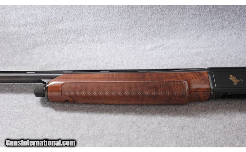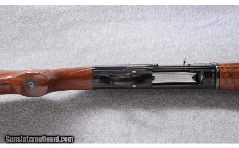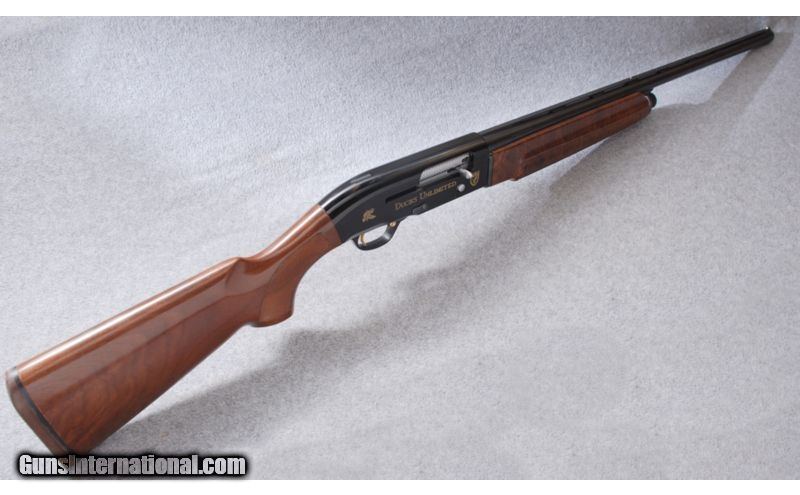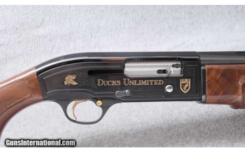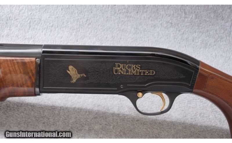 Description: Engraved Ducks Unlimited receiver. SOLD Manufacturer: 1986 Caliber Info: 12 Ga. Chambers: 3 Metal Condition: ANIB Wood Condition: ANIB Bore Condition: ANIB Barrels: 28" Vent Rib Stock: Gloss Walnut with checkered pistol grip and inlaid D.U. logo grip cap Stock Dimensions: 14" LOP: 1 1/4" DAC: 2 1/4" DAH Fore End: Walnut with wraparound checkering and finger grooves Butt Pad: Rubber Weight: 7 Lbs. 8 Oz. Sights: White front bead. Brass mid bead. Chokes: Interchangeable. Cylinder tube in gun. Extras: Padded hard case, papers. No other accessories. Item Location: Billings, MT |