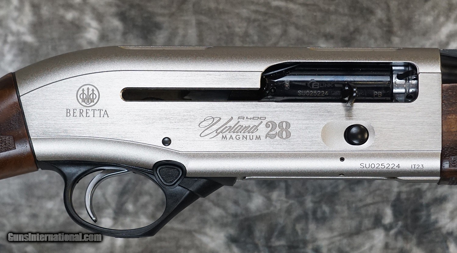 Description: New Beretta A400 Upland Field 28GA with 28" factory OBHP choked barrel, parallel game rib. Nickel finished action with factory game scene engraving, factory field stock with integrated factory Kick-Off recoil reducing stock, field forearm. Factory case, chokes and tools. SOLD Shotgun Gauge: 28 Gauge |
