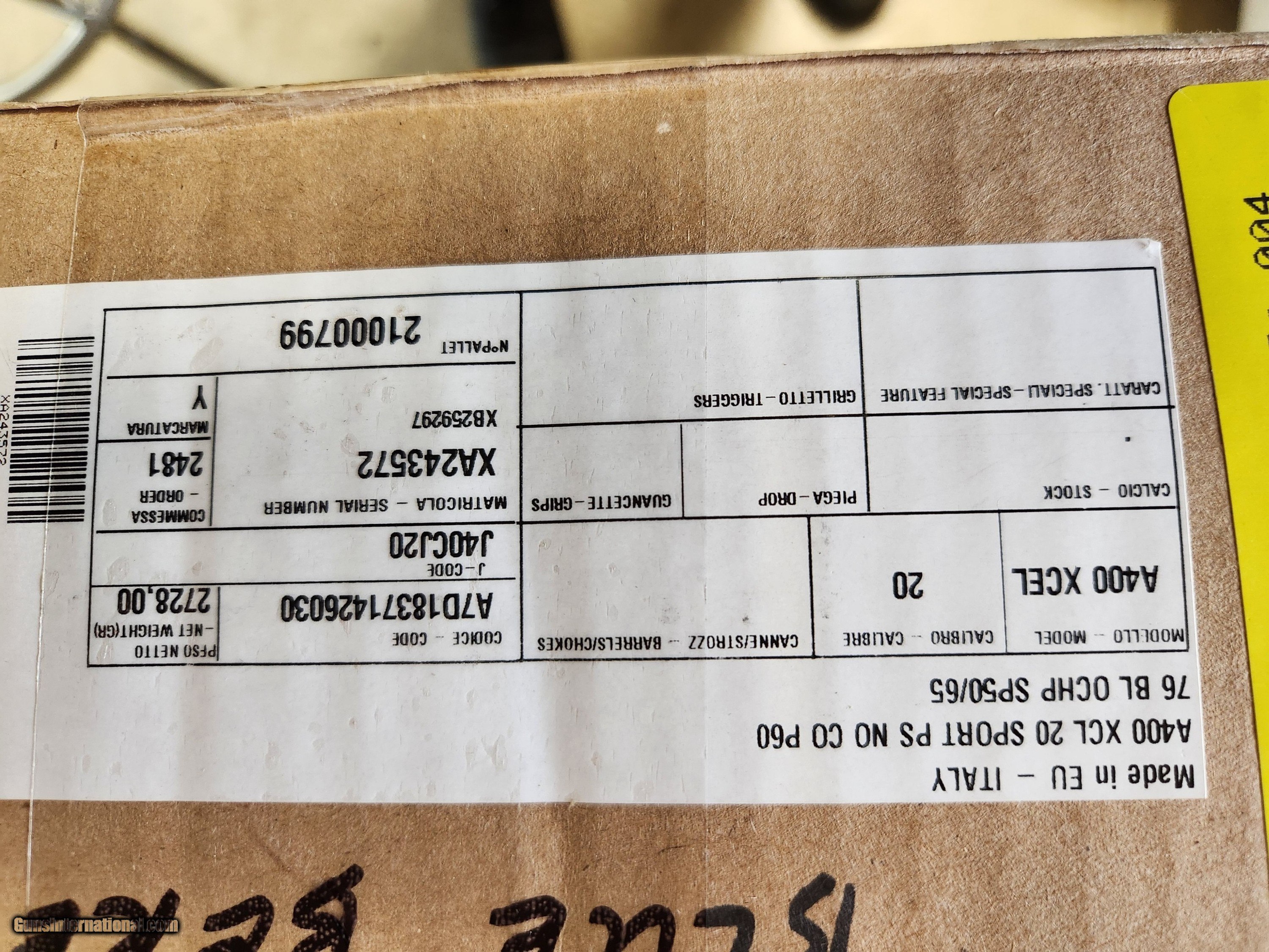 Description: NEW IN BOX Beretta Model A400 XCEL, semi-automatic 20 gauge. 30 inch vent-rib barrel. 3 choke tubes. Hard case. $1850 INCLUDES SHIPPING to FFL Only. E-MAIL PLEASE. SOLD Shotgun Gauge: 20 Gauge Manufacturer: BERETTA Model: A400 Barrel Length: 30 INCH Condition: NEW |