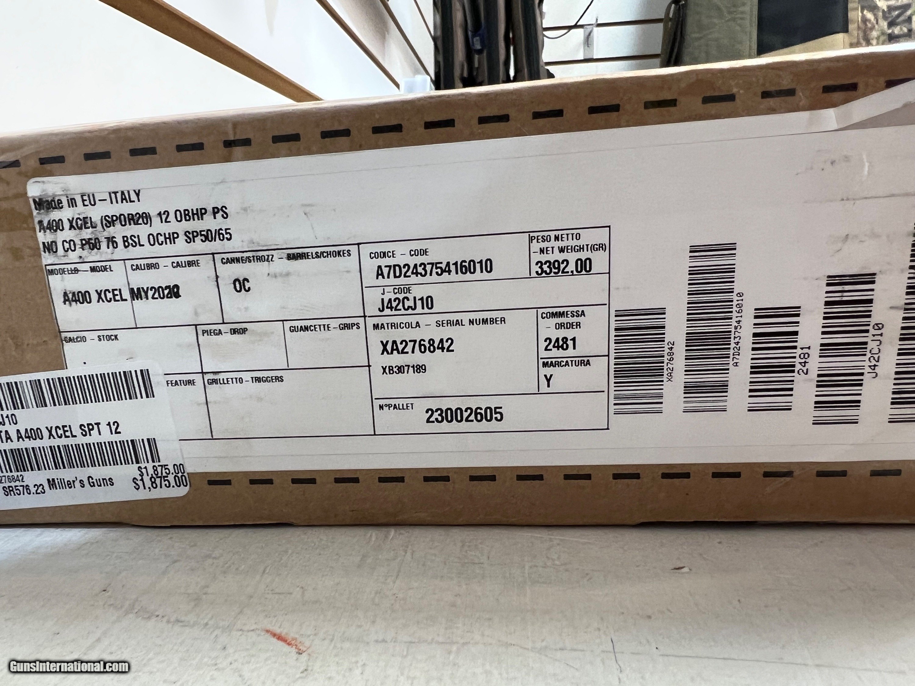 Description: Beretta A400 Xcel Sporting 12Gauge (CALIBER:12 GAUGE);(MAG CAPACITY:12);(GUN TYPE:SHOTGUN: SEMI-AUTO);(MODEL SERIES:A400|XCEL);(ACTION:SEMI-AUTOMATIC);(CAPACITY:3+1);(FINISH:GREY/ BLUED);(STOCK:XTRA-GRAIN TECHNOLOGY W/ OIL FINISH/ CHECKERED);(SIGHTS:FT: WHITE/ STEEL MID-BEAD);(BARREL LENGTH:30);(FEATURES:ADJUSTABLE STOCK SHIM SYSTEM/ ENLARGED LOADING PORT);(DEPT:LONG) Buyer pays shipping Millers Gun Center Located in New Castle, Delaware "Home of TAX-Free shopping" No Credit Card Fees Send Gun international inquiry and then call 302-328-9747 to complete your purchase SOLD Shotgun Gauge: 12 Gauge Manufacturer: Beretta Model: A400 Serial Number: XA276842 |