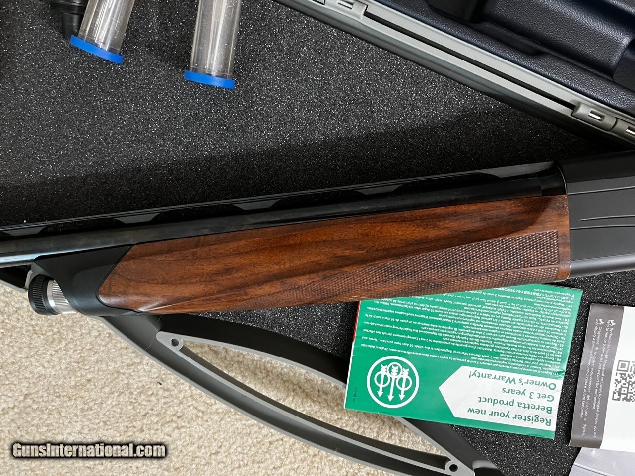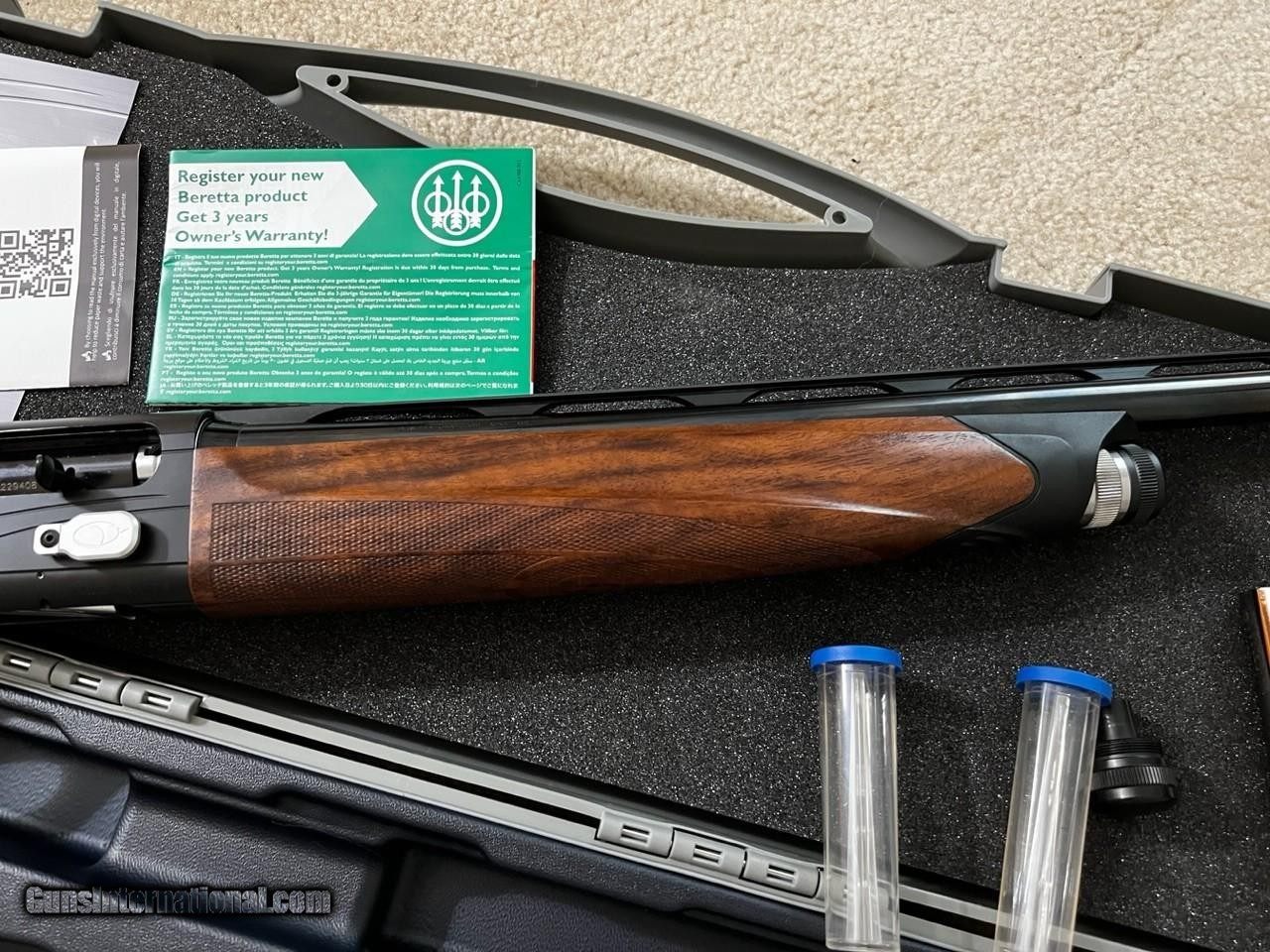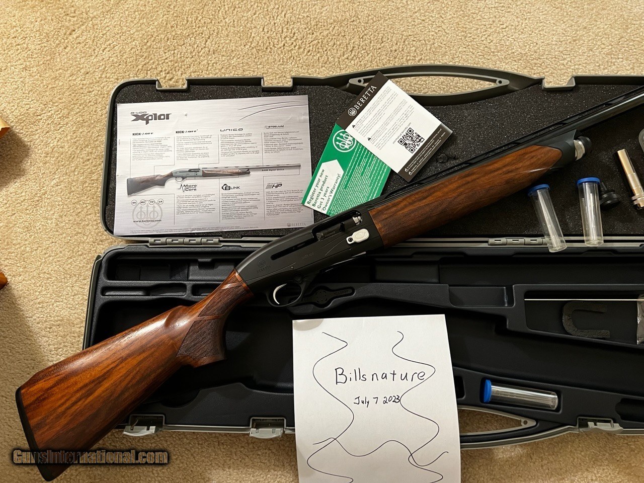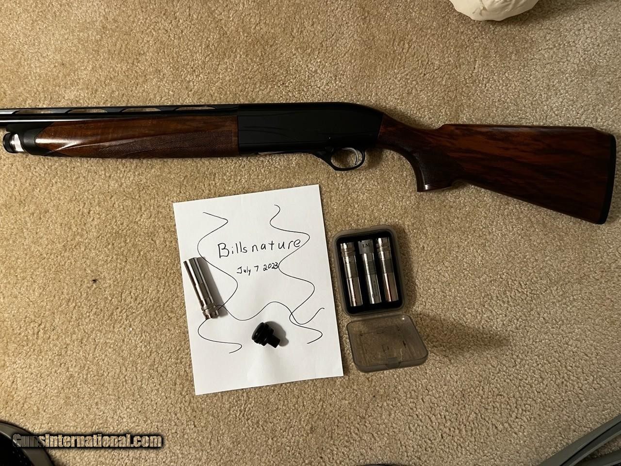 Description: Rare Beretta A400 Xcel Vittoria sporting with 30” barrel Cole special (like Cole Pro) The perfect gun for a lady, teen, or shorter stature man, especially with 30” barrel. This gun is used but, in many ways, it is better than new. It doesn’t have any “Smurf Blue” like the original Vittoria and it doesn’t have the ugly blue bolt and cardboard box of the new version. This gun has all the features of the Cole’s Pro model except the Extended bolt handle which could be added for $50. I bought it at Cole’s in Naples in early 2020 and I had them Cerakote the receiver and fore end balance cap in black and add the silver extended bolt release. The Trigger was sent to Cole’s in Maine for a trigger job. The stock has had 3 coats of hand oiling without any blocking up of the checkering so the wood looks better than typical Xcel or Vittoria. This gun has a 30” barrel as opposed to the typical 28” barrel. Gun will come with both a black Cerakoted light weight balance cap and a black mid weight balance cap. It will also come with 5 Chokes instead of 3 (SK, IC, LM, M, IM) and the silver Beretta hard case. The gun has about 4000 rounds through it so it shows slight wear in the ejection port but in great overall condition. SOLD Shotgun Gauge: 12 Gauge Manufacturer: Beretta Model: Vittoria (Xcel) Barrel Length: 30 Condition: Excellent Metal Condition: Excellent Wood Condition: Excellent Bore Condition: excellent Stock Dimensions: LOP is 13 7/8 to 14 Stock Drop: Adjustable by shim Stock Comb: Semi- Monte Carlo LOP: 13 7/8 to 14 Chokes: 5 Chokes SK, IC, LM, M, IM Extras: Balance cap Case: Yes original Beretta gray |