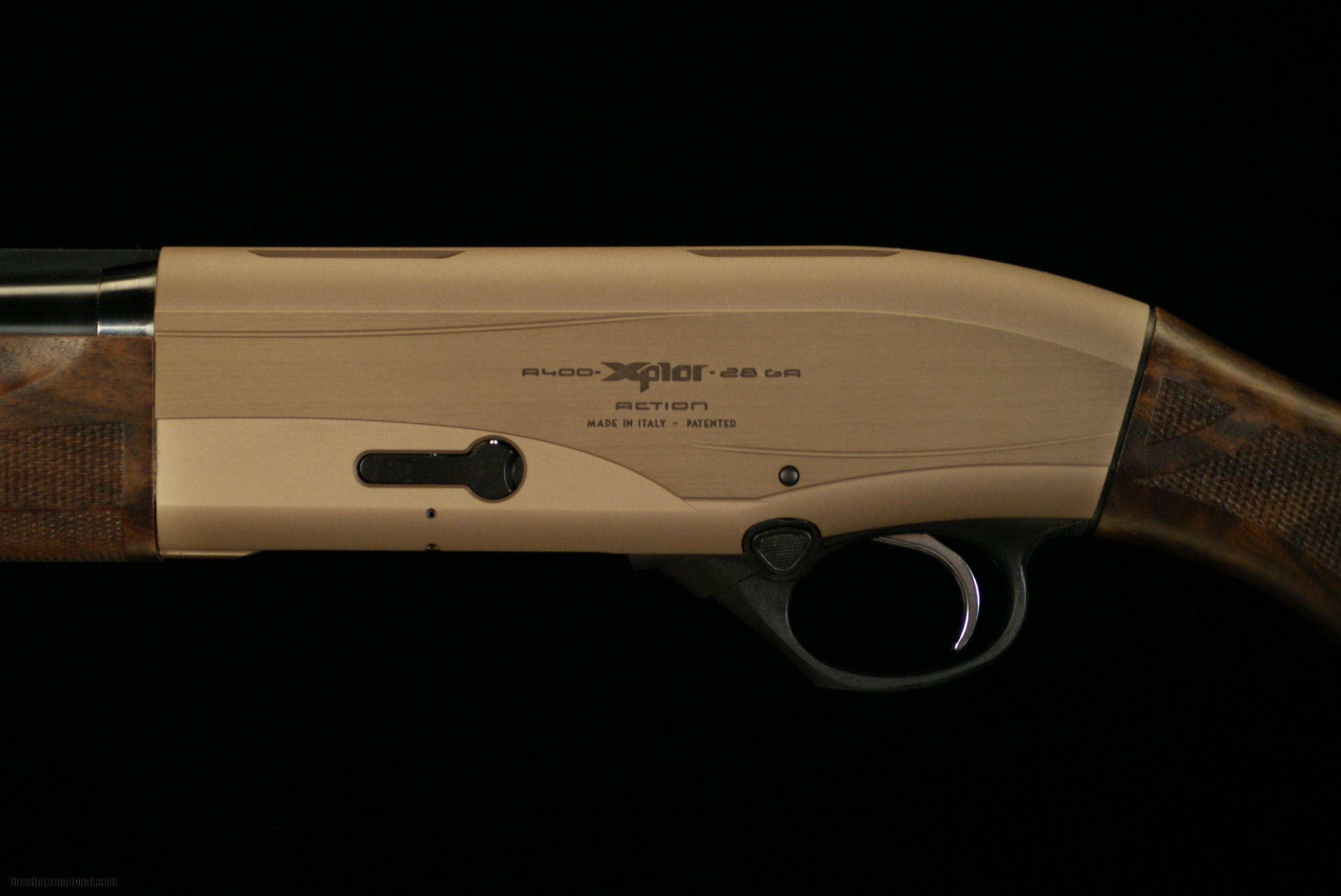 Description: Beretta A400 Xplor Action, 28 Bore, 2 3/4" chambers, 28" barrels with Optima HP screw-in chokes, 5 lbs. 7 oz., 14 1/2" LOP over a pad, 1 1/2" DAC, 2 1/4" DAH, neutral cast, bronze toned aluminum alloy receiver, Blink Gas System, single trigger, pistol grip, checkered select walnut with Xtra-Grain Technology and oil finish. New and in stock. Gun no. 142565. SOLD |