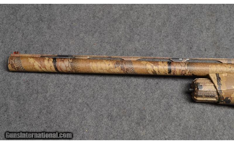 Description: This semi-automatic shotgun is a Beretta A400 Xtreme, chambered in 12 gauge. It has a 26" camouflaged steel barrel with a vented rib, a fiber optic front sight, and camouflaged polymer furniture with black rubber hand grips. This Beretta A400 Xtreme is in very good condition with few signs of use or wear. Comes with a case. SOLD Caliber Info: 12 gauge. Chambers: Semi-automatic shotgun. Metal Condition: Very good. Few signs of wear or usage. Wood Condition: Very good. Few signs of wear or usage. Bore Condition: Good. Barrels: 26" camouflaged steel barrel with a vented rib. Triggers: Single metal trigger. Stock: Camouflaged polymer stock with black rubber grip and cheek rest, elastic shell holder on stock. Stock Dimensions: 14-1/2" LOP, 1-1/2 DAC, 2-1/4" DAH. Fore End: Camouflaged polymer fore end with black rubber hand grip. Butt Pad: 1/2" black rubber Beretta recoil pad. Weight: 7lbs-12oz. Sights: Fiber optic front sight. Chokes: Improved modified choke in the barrel. Extras: Comes with a case. Item Location: Wichita, KS |