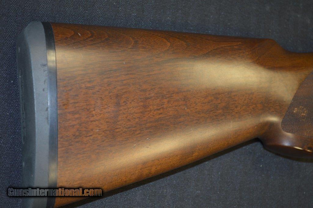Description: This is a Beretta AL 391 Urika Sporting shotgun with a 28" barrel and several Beretta Optima chokes. The length of pull is 13-1/4" to a black KickEzz recoil pad. There is no gold wear on the trigger. The drop at the comb is 1-1/2" and the drop at the heel is 2-3/8". The gun is chambered for 3" shells, but of course it will shoot the lightest load as well without doing anything differently. It does have a magazine cut off to allow for loaded shells in the magazine but not in the chamber for safety reasons. The magazine holds three shells for a total of 4; without the plug. The bore is bright and shiny and the gun weighs 7 lbs 7 oz. It comes in the Beretta factory blue hard plastic travel case. SOLD |