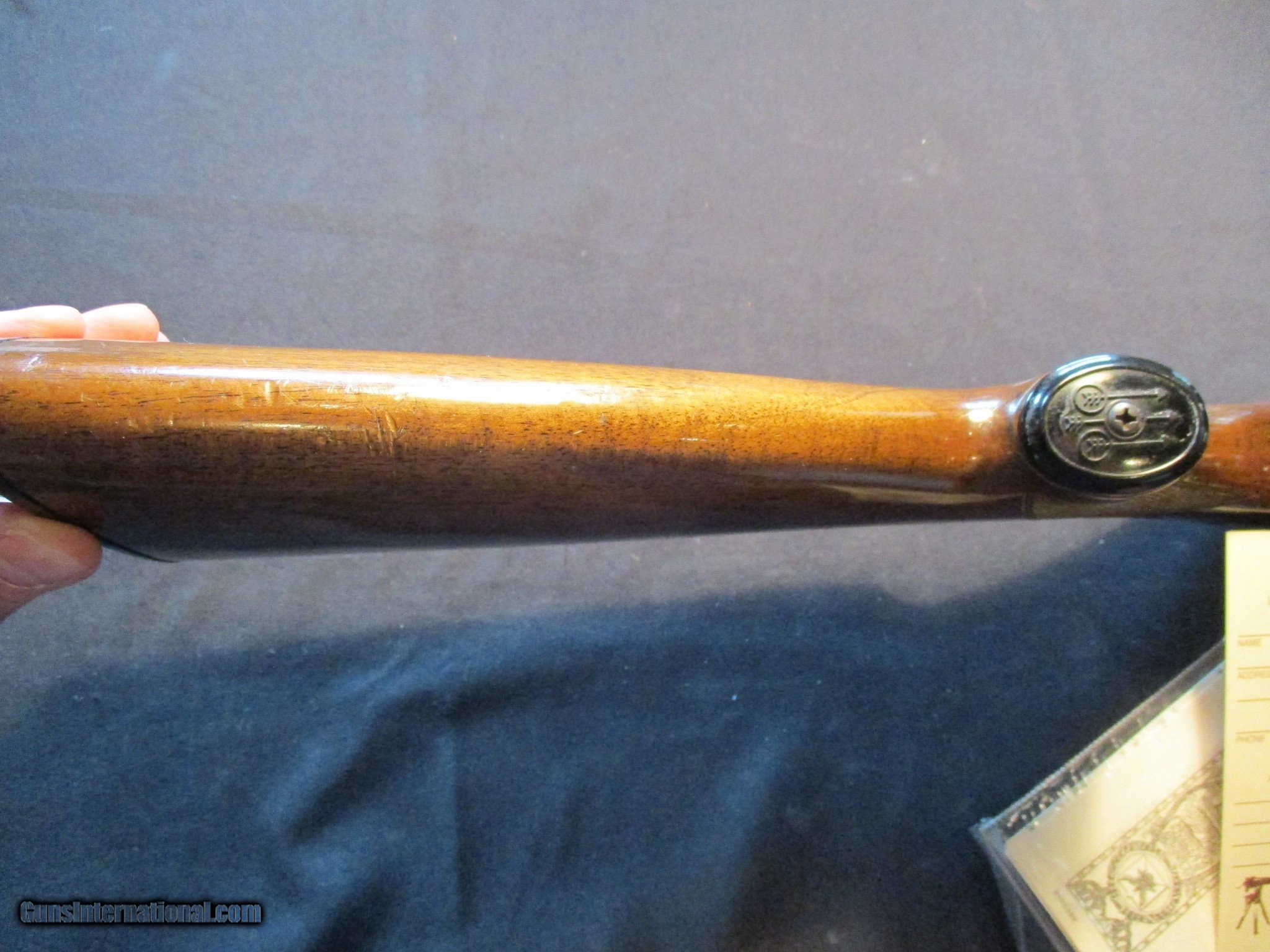 Description: Beretta AL-2, 20ga, 28" vent Rib, Fixed Mod choke. Factory finish on both wood and metal, factory butt plate. Nice clean all original gun. Comes with the the factory paperwork as shown. SN is E105xx. Email me if you would like these pics sent to you, they will come through bigger and better than on the listing page here. We do offer Lay-A-Way. Our standard terms are 25% down, 90 days. Initial deposit is not refundable. Email me with any questions. I am a store front dealer, and I will close s if the gun sells locally. Once it has aI will pull it from my shelves. Please check your local laws to confirm it is legal to own in your state! Buyer pays $25 shipping and insurance to your FFL in the lower 48. AK, HI or PR is extra. I will ship to California, NO PROBLEM! All my guns come with a non firing, 3 day unconditional return privilege, from the day UPS delivers to your dealer. Buyer pays shipping both ways if the gun comes back. I can add a new hard case by PLANO for secure shipping for $25 if the buyer wishes (highly recommended, cheap insurance, really helps keep the UPS monster from eating my guns!). No sales tax on guns ship out of Kansas, guns sold in Kansas are subject to Kansas sales tax. I am a licensed FFL, and will include a copy of my FFL with the gun for your dealers records. I will ship to a C&R if the gun is eligible. I will ship to California, but you need to confirm the gun is legal where you are, California or other. I am always looking for good clean, old original Winchesters to buy, consign, or trade, especially pre '64's model 70's and model 54's. WE ALSO TRADE FOR CLASSIC CARS AND TRUCKS! Email me with any questions, and good luck! SOLD |