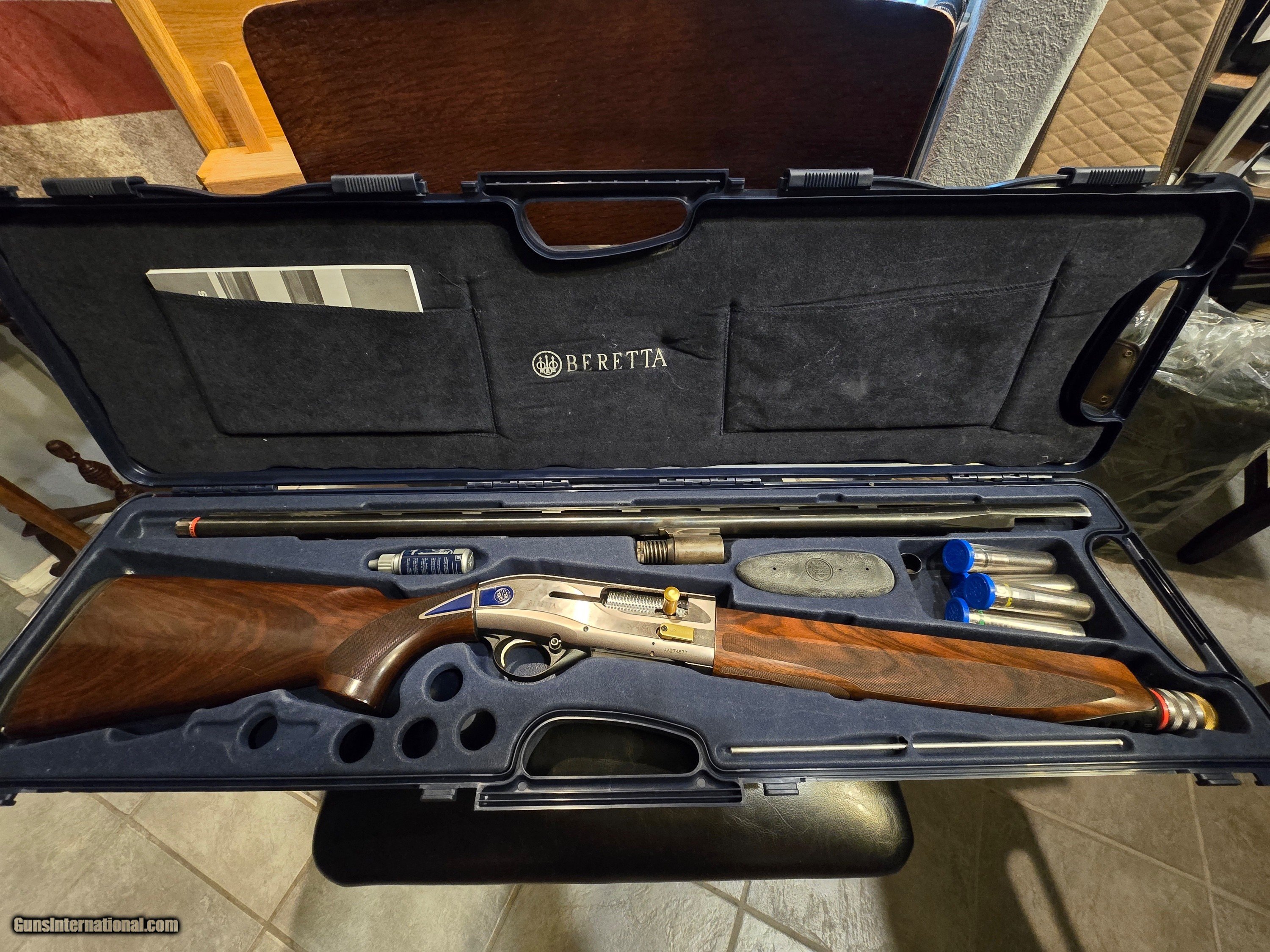 Description: HERE IS A NICE LOOKING BERETTA AL391 TEKNYS OPTIMA 12GA WITH 30 INCH PORTED BARREL WITH A BRILEY KIT. WITH 5 EXTENDED CHOKE TUBES SKEET MOD,IMP/FULL.IC. he Beretta AL391 Teknys Optima is a premium gas-operated semi-automatic shotgun, a more upscale version of the AL391 Urika, known for its gas-operated system that provides reliable cycling and reduced recoil. It features upgraded aesthetics, like fancy engraving and a multi-colored, asymmetrical receiver, along with high-end finishes such as "Xtra Wood" stock options and a Gel-Tek recoil pad. The "Optima" designation indicates it comes with the OptimaBore barrel and OptimaChoke system. Key features