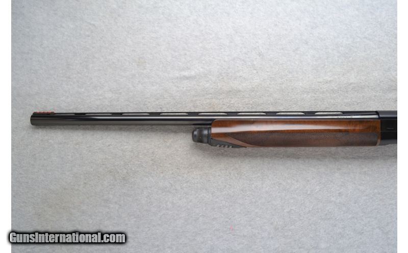 Description: This Beretta Model AL391 is a right hand action semi-auto 12 Ga. shotgun. It has a 28 inch ventilated rib barrel with a red high visibility front sight and a checkered grip walnut pistol grip stock. In overall very good condition it comes as is in a hard case with 6 choke tubes, choke wrench, extra recoil pad and adjustment spacers. SOLD Manufacturer: Made in Italy. Caliber Info: 12 Ga. Chambers: 3 inch. Metal Condition: Very good. Has some very minor surface marks. Wood Condition: Very good. Minor handling marks. Bore Condition: Bright and shiny. Barrels: 28 inch ventilated rib barrel. Triggers: Golden. Stock: Checkered grip walnut pistol grip. Stock Dimensions: LOP 14 1/2 inches. Fore End: Checkered grip walnut. Butt Pad: Beretta black rubber recoil pad. Weight: 7 lbs. 5 oz. Sights: Red bar high visibility front. Chokes: OB Comes with 6 - F, IM, M, IC, CL and PB-F-SP* Optima Choke Plus. Item Location: Richfield, WI |