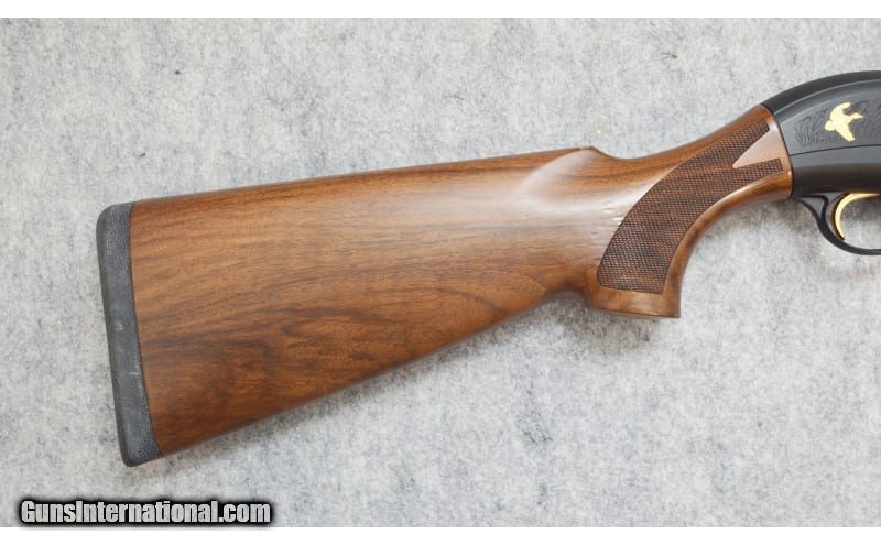 Description: This Beretta AL391 Urika 12 gauge semiautomatic shotgun uses a self-compensating gas-driven recoil system. This system helps to automatically adjust for different charged shot shells and reduce felt recoil. It has a 28" ventilated ribbed barrel with a 3" chamber and 4 interchangeable choke tubes which are included. The aluminum receiver has a black satin finish with engraving and gold lettering, bird, and Beretta sign. LOP: 14 3/8" DAC: 1 3/8" DAH: 2". Comes with its factory box. Overall condition is good-very good. Show signs of use. There are small amounts of finish removed due to the action of the firearm. Small nicks and scratches on both sides of the receiver and stock. One medium size nick on the edge of the comb. 12 Gauge SOLD Chambers: 3 Metal Condition: Very Good Wood Condition: Good Bore Condition: Very Good Barrels: 28 Triggers: Factory Gold Trigger Stock Dimensions: LOP: 14 3/8 Fore End: Checkered Walnut Fore End Butt Pad: Factory Butt Pad Weight: 7.5 lbs Sights: Bead Front Sight Chokes: Interchangeable Choke Tubes Item Location: Louisville, KY |