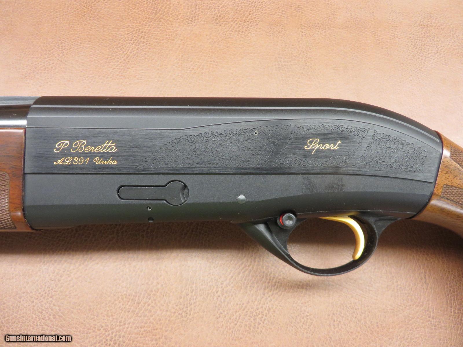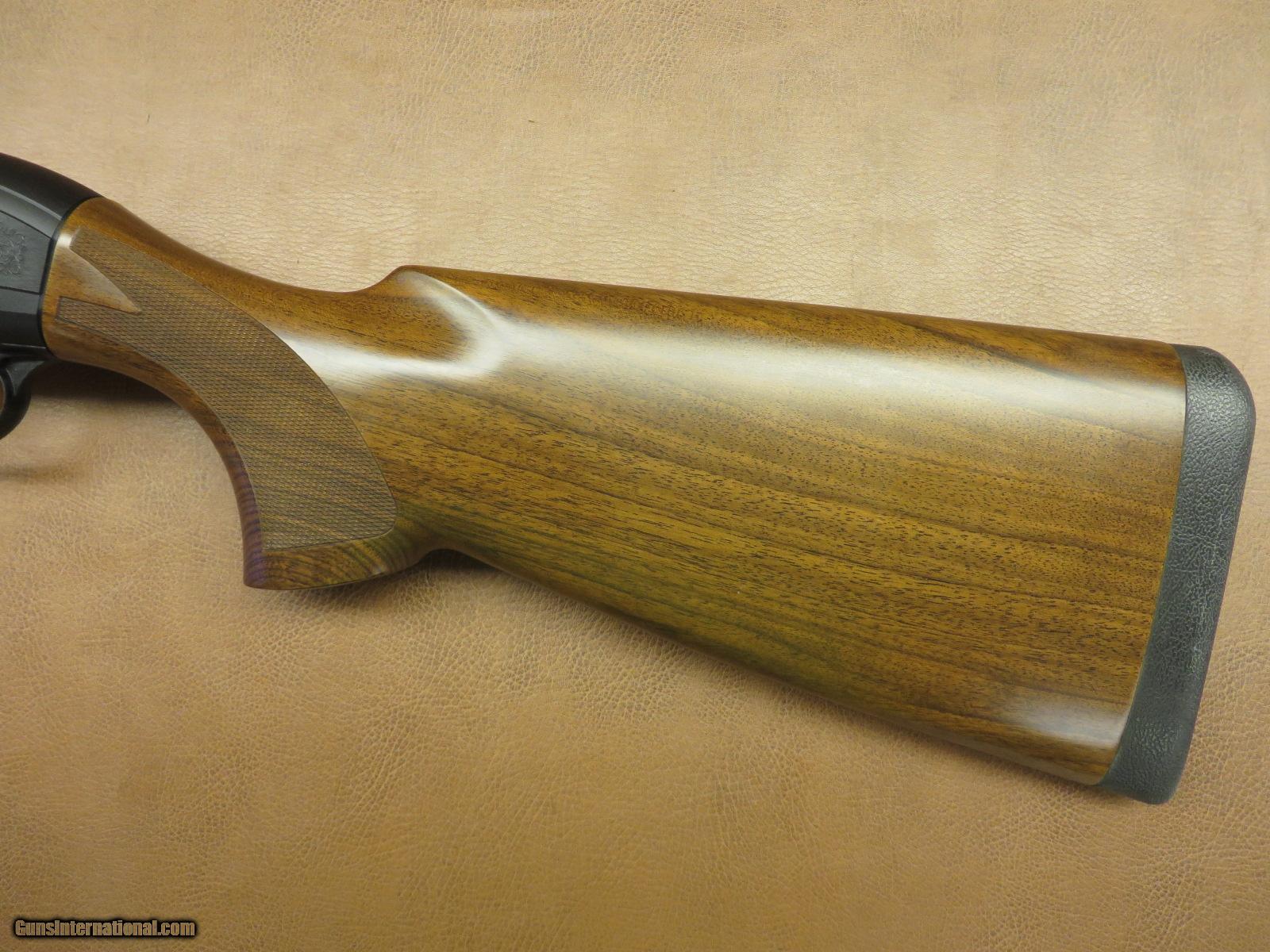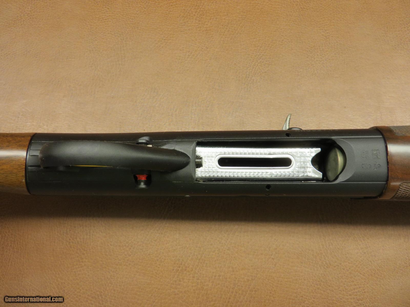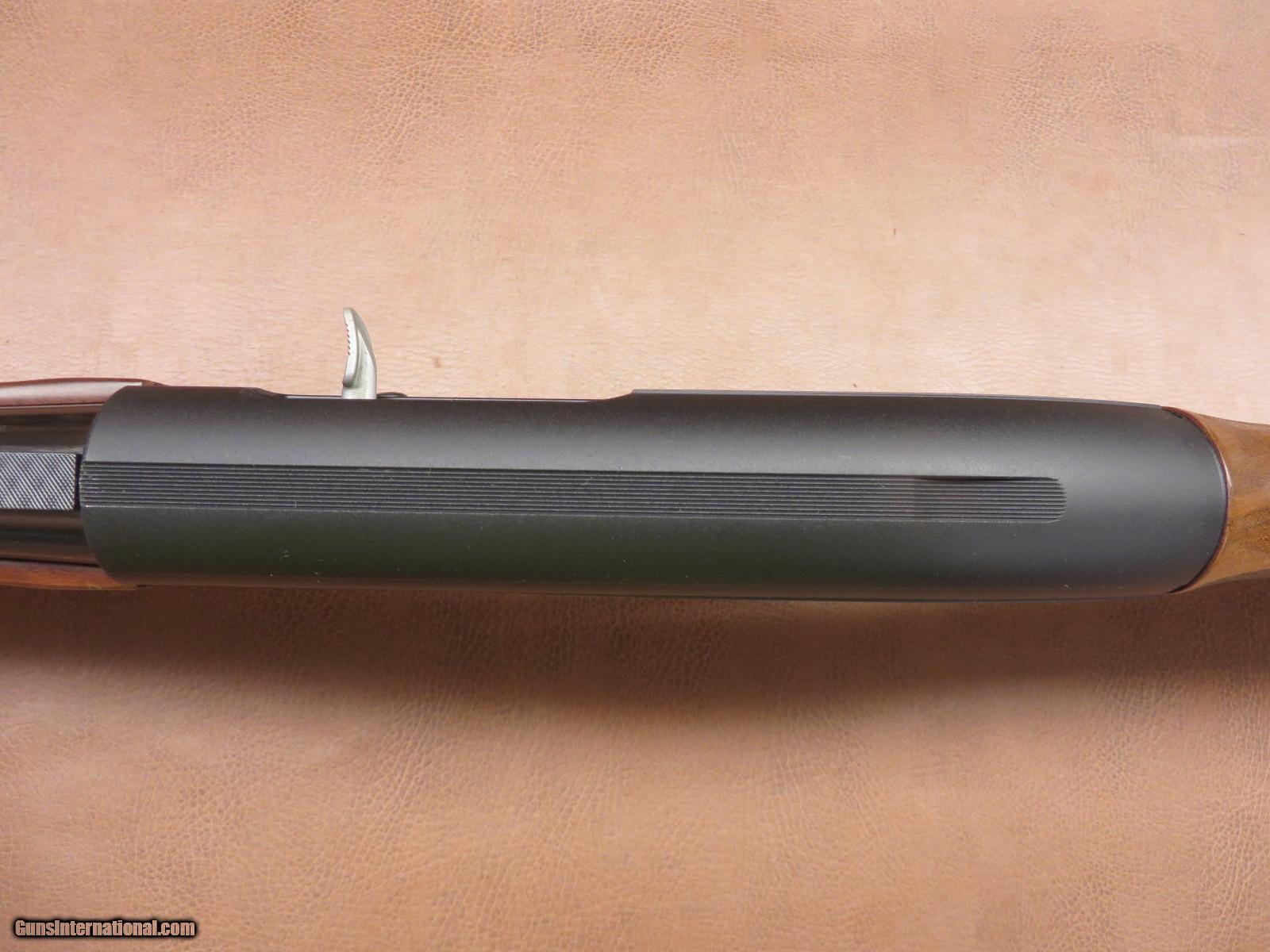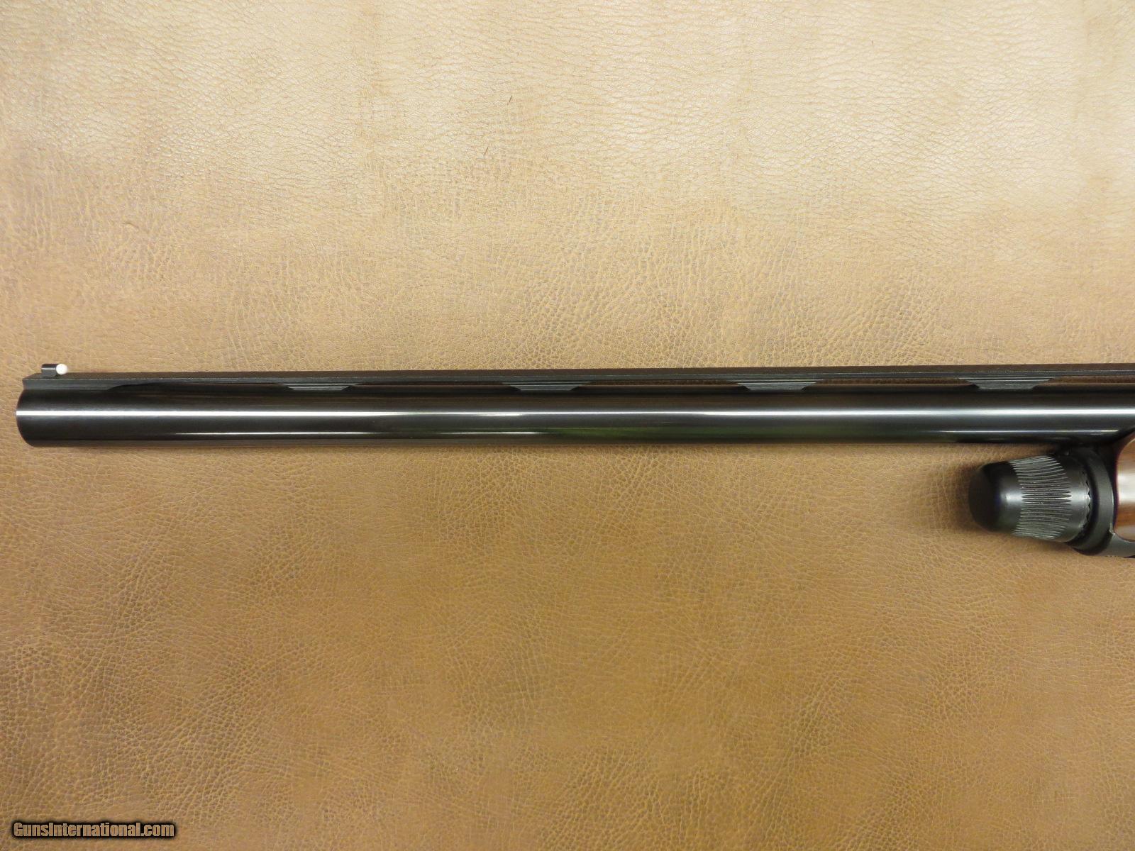 Description: 12 ga. for 2 3/4 or 3 inch shells has 28 inch vent rib choke tubed barrel. Engraved receiver has gold lettering and gold trigger. Jeweled breech bolt and shell lifter. Checkered walnut with 2 original bubber butt pads for different length of pulls. Has one ring ding in the grip area of stock. The metal and remainder of wood are 99% and gun comes in original hard case with 5 choke tubes, wrench, and duck plug. SOLD |