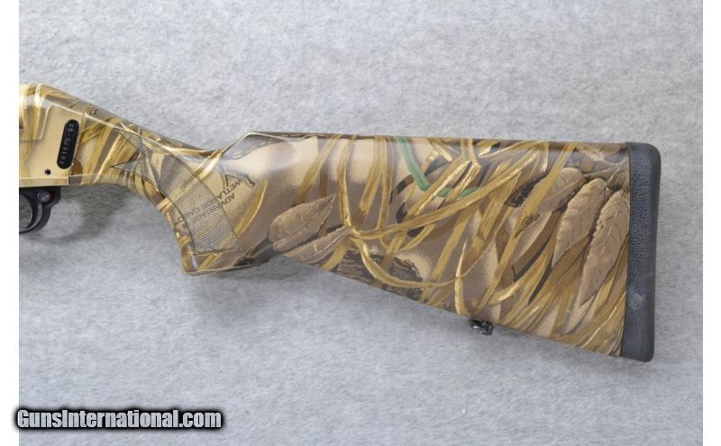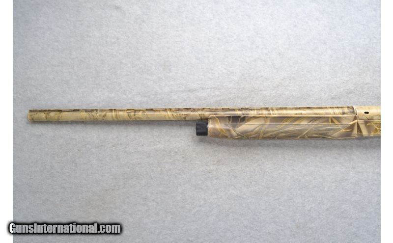 Description: This Beretta Model ES100 is a right hand semi-auto 12 Ga. shotgun. It has a 28 inch ventilated rib barrel with a 3 inch chamber and comes with 3 choke tubes - F, M & IC and choke tube wrench. It is in Advantage Wetlands Camo. In overall very good condition it shows some camo wear on the receiver and barrel bottom. Comes as is. No box. SOLD Caliber Info: 12 Ga. Chambers: 3 inch. Metal Condition: Excellent. Camo pattern wear. Bore Condition: Shiny. Barrels: 28 inch ventilated rib barrel. Stock: Checkered grip polymer pistol grip. Stock Dimensions: LOP 14 5/8 inches. Fore End: Checkered grip polymer with finger grooves. Butt Pad: Beretta black rubber recoil pad. Weight: 7 lbs. 8 oz. Sights: Brass bead front. Chokes: Tube. Comes with 3 tubes - F, M and IC. Item Location: Richfield, WI |