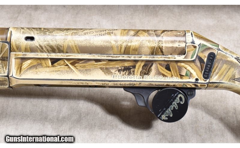 Description: The Inertia driven ES100 marries the two main shotgun companies in Europe into one lightweight shotgun. This one shows some wear but is well manintained and all wear appears to be cosmetic. It features wetlands camo finish, soft recoil pad, and comes with three chokes. 12 Gauge SOLD Chambers: "12 gauge, 3-inch Metal Condition: Good. Camo coating shows honest wear. Wood Condition: Good. Camo coating shows honest wear. Bore Condition: Shiny and bright. Barrels: 26 inches Triggers: Factory trigger. Stock Dimensions: 14-1/2 inch LOP. Fore End: Matching semi-beavertail. Butt Pad: Soft rubber pad. Weight: 7 lb - 5 oz. Sights: Ventilated rib with bead. Chokes: Interchangeable screw-in chokes Item Location: Rogers |