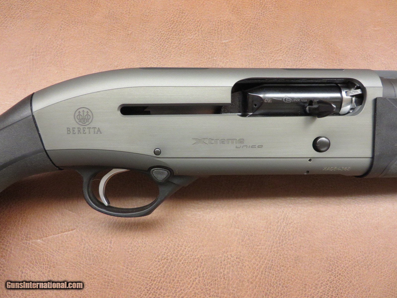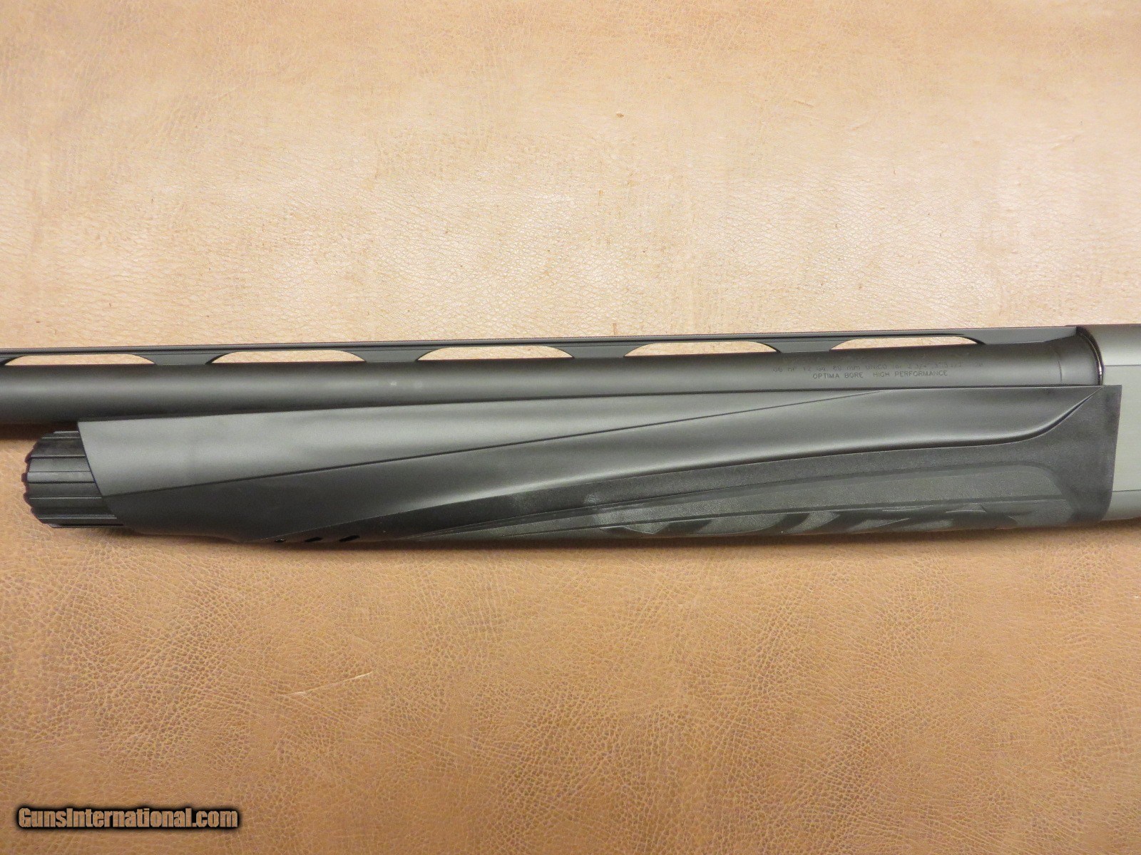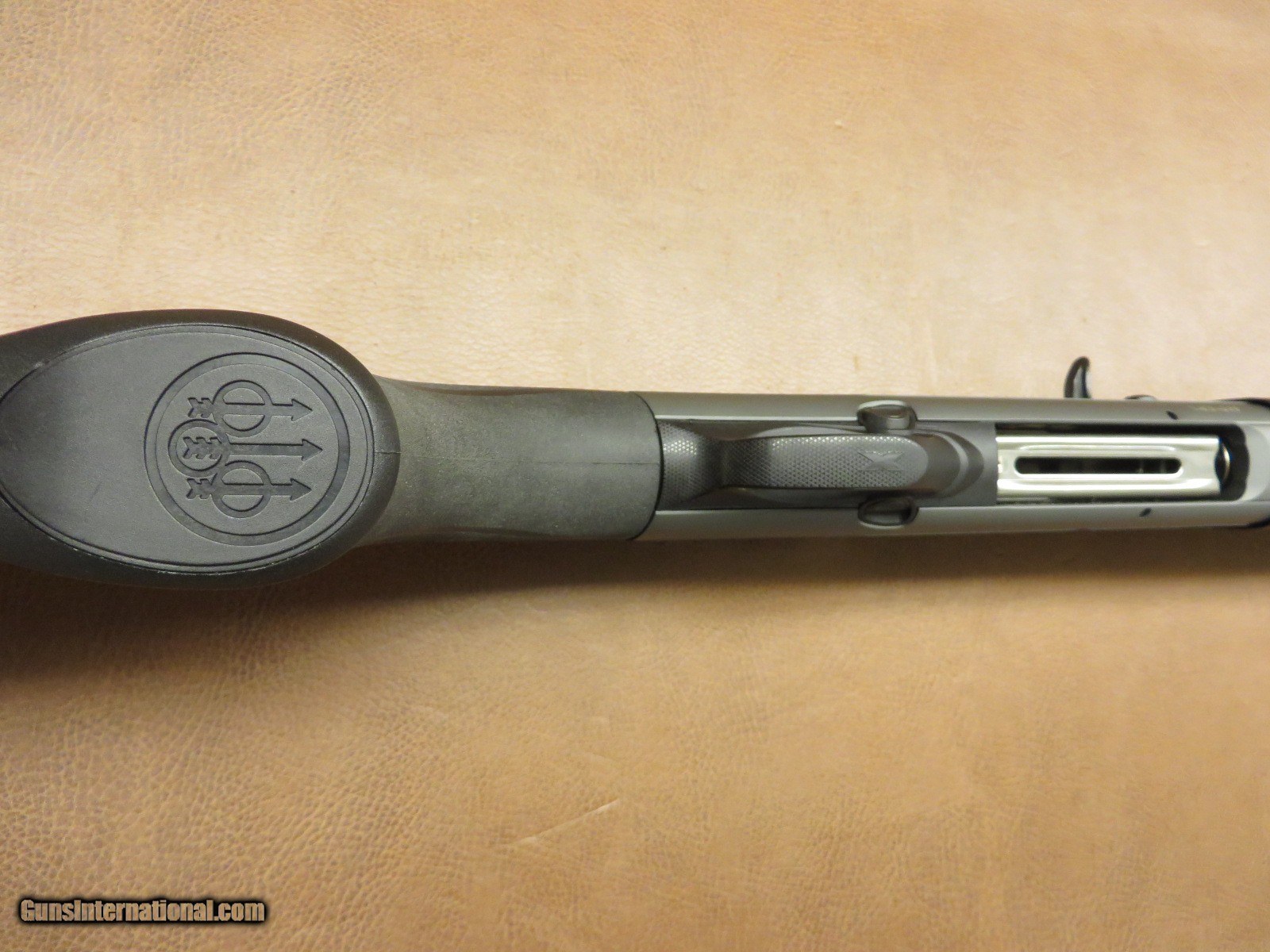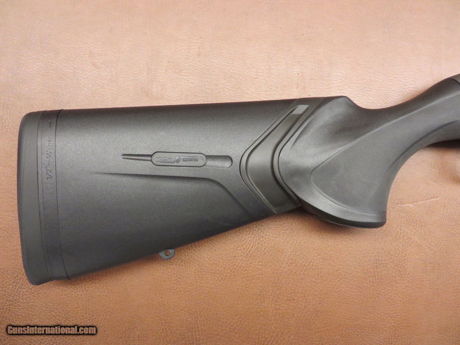 Description: 12 ga. for 2 3/4, 3, and 3 1/2 inch shells has 26 inch vent rib barrel with 3 choke tubes. Black synthetic stock has rubber grip inserts, sling swivel studs, and is adjustable for length of pull with included spacers. New in original hard case with papers, stock shims, sling swivels, and choke wrench. SOLD |