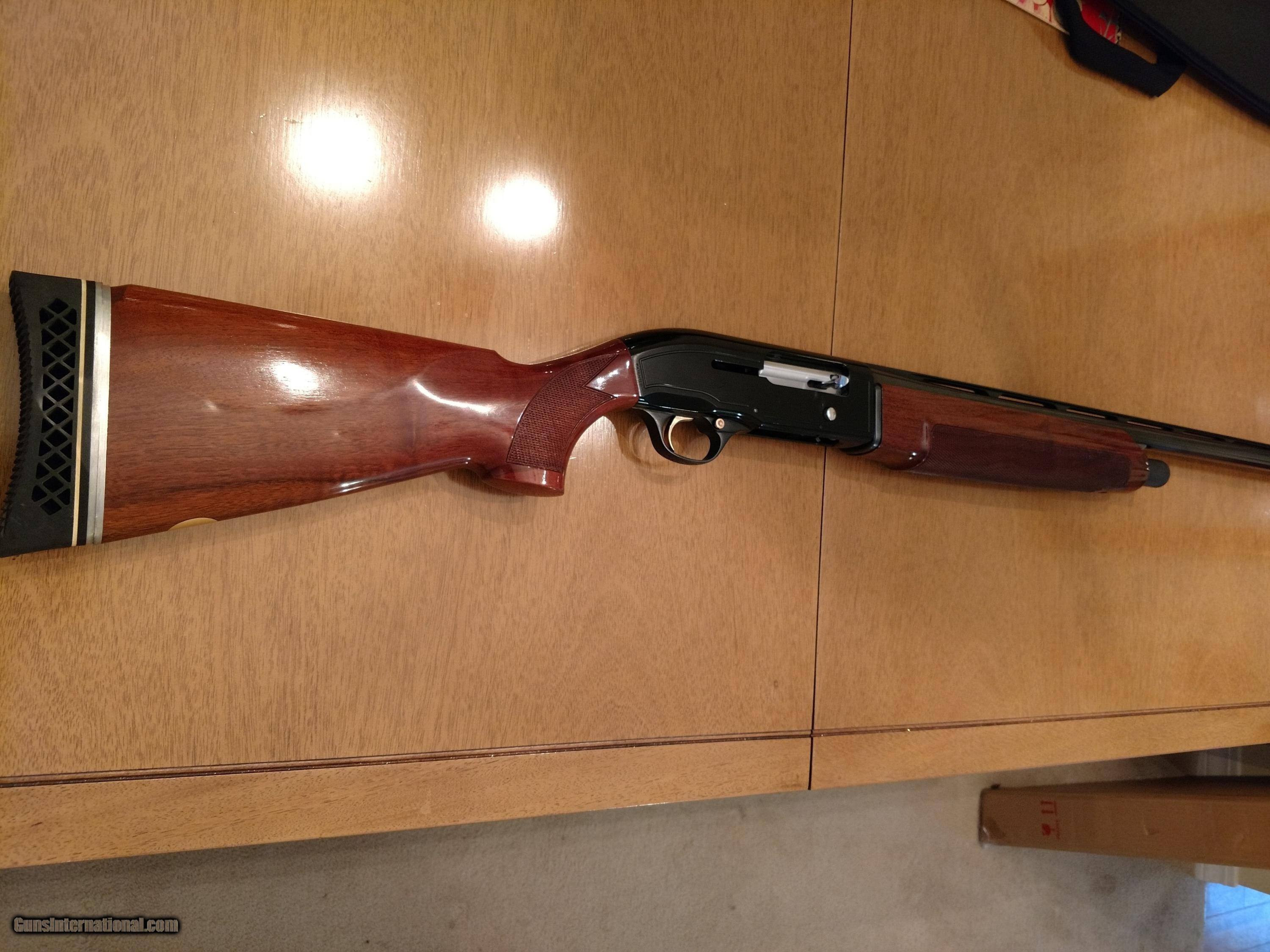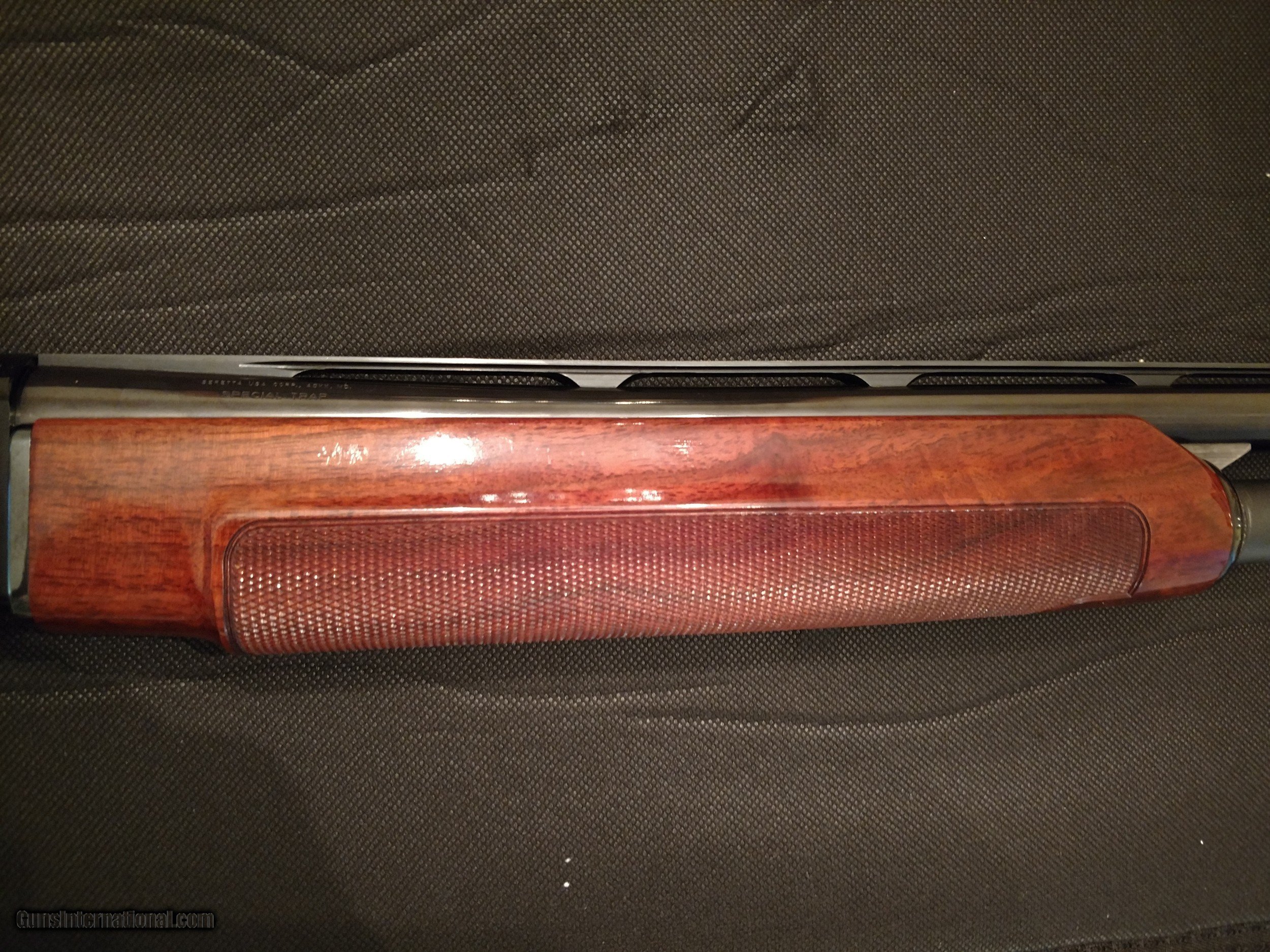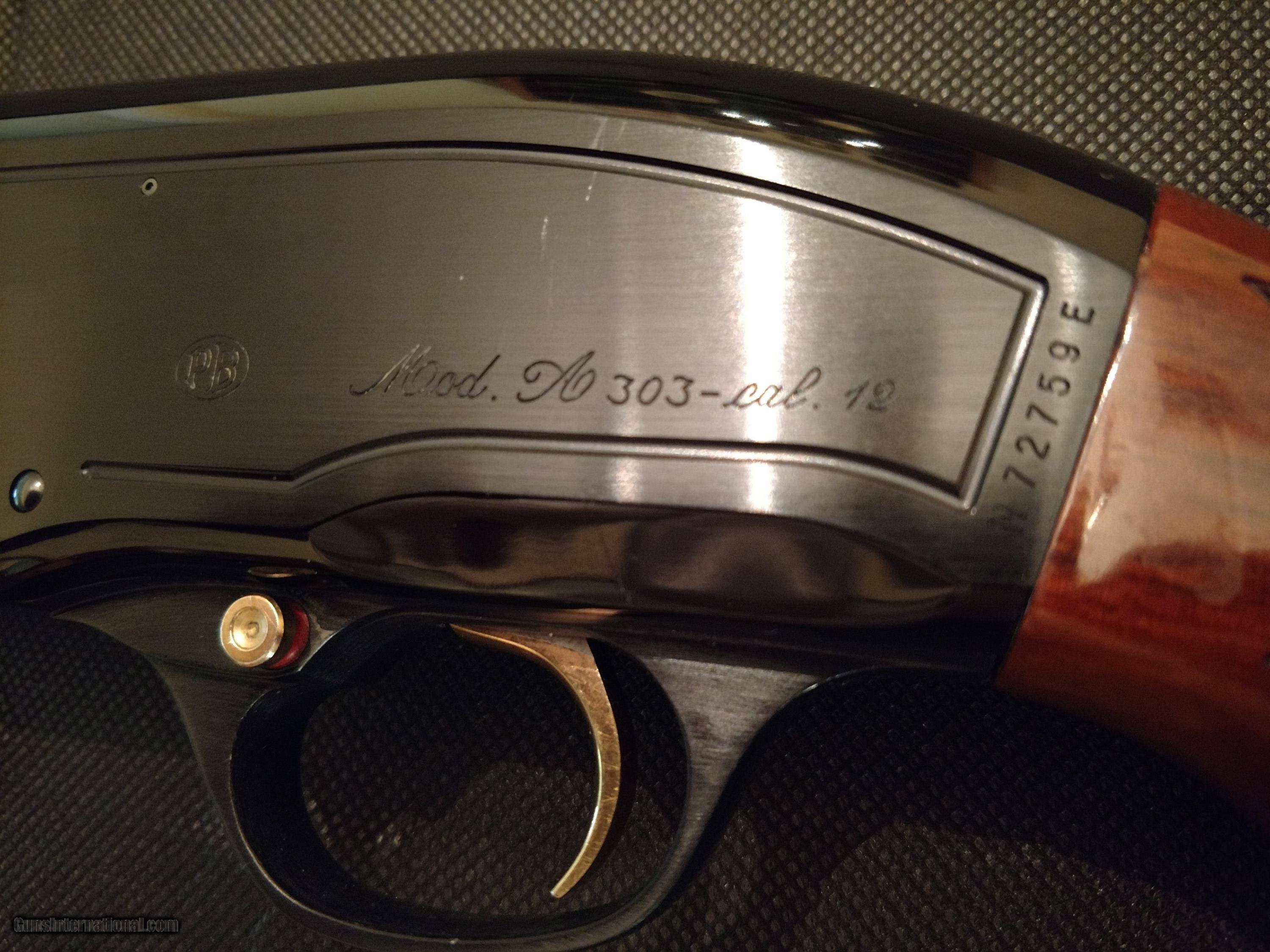 Description: BERETTA SPECIAL TRAP MODEL A 303 semi-automatic 12 gauge, 30" barrel under ventilated top-scrolled rib, flawless checkered walnut pistol grip stock and forearm all complimented by pristine polished blu finish (all original) , fixed full choke, 2 3/4" chamber, LOP 14 1/8", gold trigger, flawless bore and overall length of 49 1/2 inches. The overall condition of this rare beauty is 99.5%. The price is $1150 including FedEx shipping to your FFL dealer in your area PLUS a soft zipper carry case. Call me at 318-780-4242 if you are interested. The serial number is M72759E made in Italy, 1990. SOLD Shotgun Gauge: 12 Gauge Manufacturer: BERETTA Model: A 303 SPECIAL TRAP Serial Number: M72759E Barrel Length: 30 Chambers: 2 3/4 Ejectors: Semi-automatic Condition: Excellent, like new Metal Condition: near perfect Wood Condition: Flawless Bore Condition: Flawless Barrels: single Action: Semi-automatic Triggers: Gold Stock: Flawless walnut Butt Pad: See pictures LOP: 14 1/8 Rib: Vented w/scrolling Finish: glossy Sights: Fixed bead Manufacture Date: 1990 Chokes: Fixed/full see Engraving: none Case: Soft, zipper Item Location: Shreveport, Louisiana |