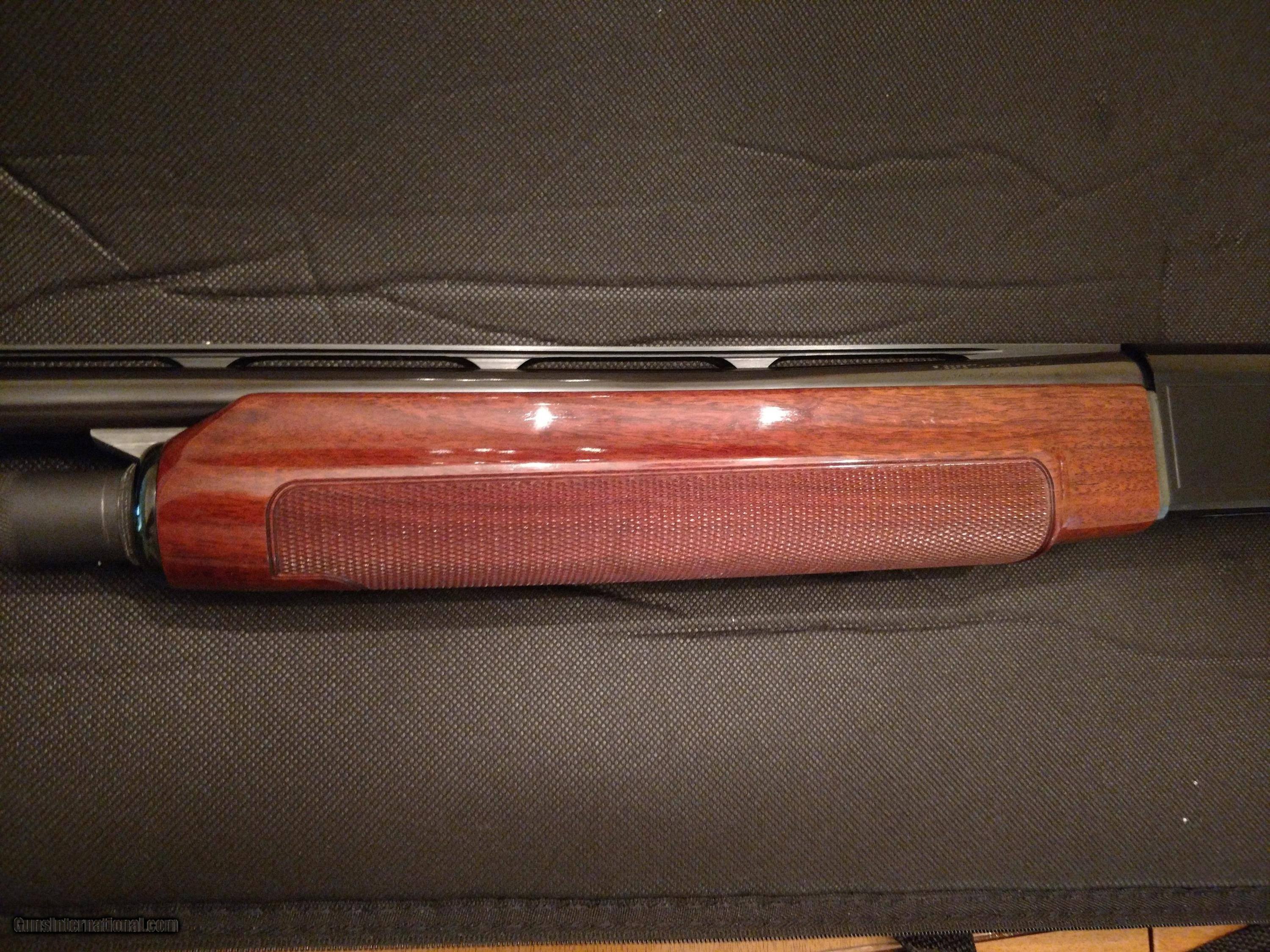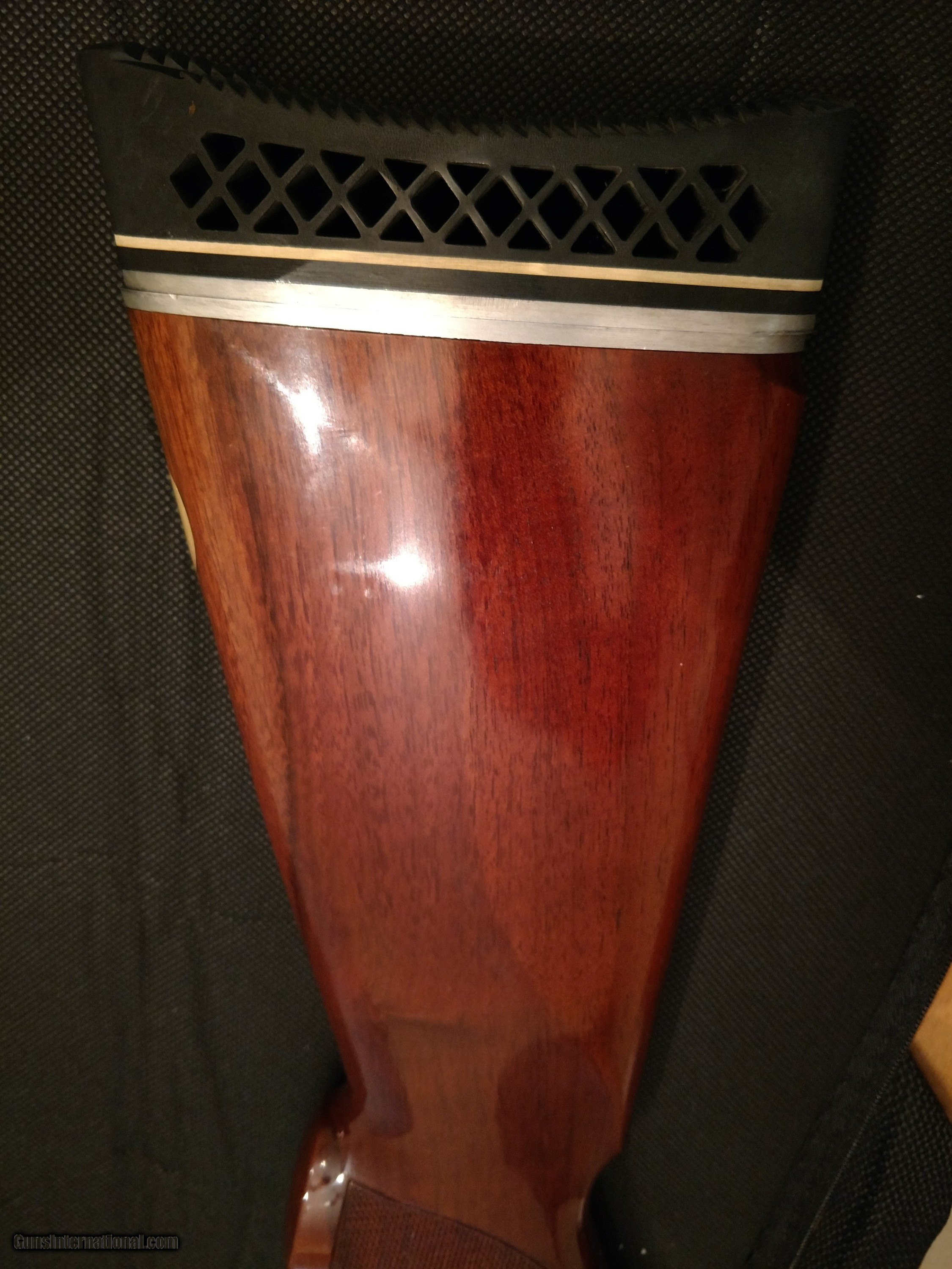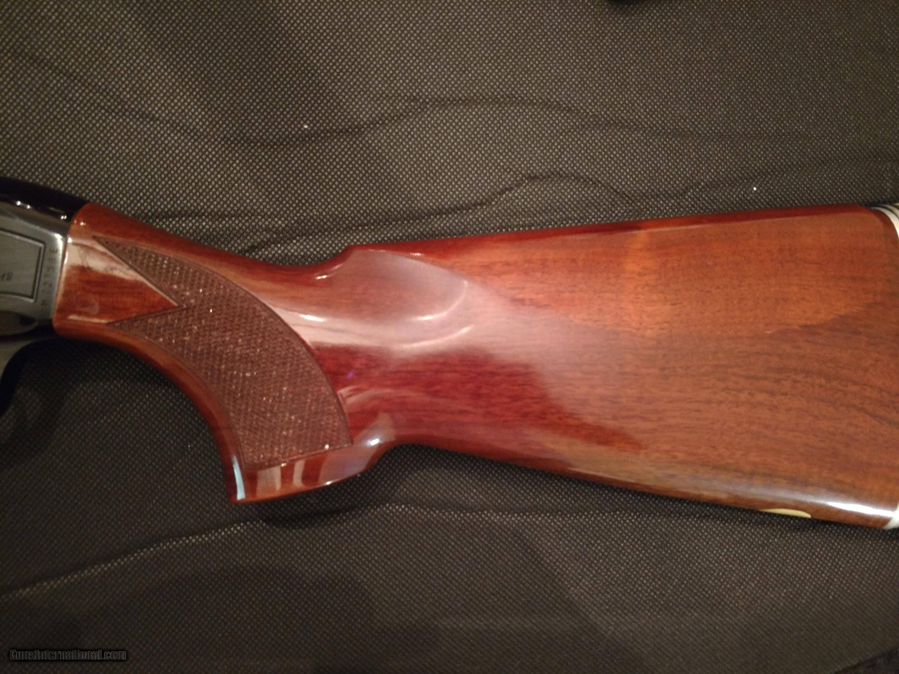 Description: BERETTA SPECIAL TRAP MODEL A 303 semi-automatic 12 gauge, 30" barrel under ventilated top-scrolled rib, flawless checkered walnut pistol grip stock and forearm all complimented by pristine polished blu finish (all original) , fixed full choke, 2 3/4" chamber, LOP 14 1/8", gold trigger, flawless bore and overall length of 49 1/2 inches. The overall condition of this rare beauty is 99.5%. The price is $1150 including FedEx shipping to your FFL dealer in your area PLUS a soft zipper carry case. Call me at 318-780-4242 if you are interested. The serial number is M72759E made in Italy, 1990. SOLD Shotgun Gauge: 12 Gauge Manufacturer: BERETTA Model: A 303 SPECIAL TRAP Serial Number: M72759E Barrel Length: 30 Chambers: 2 3/4 Ejectors: Semi-automatic Condition: Excellent, like new Metal Condition: near perfect Wood Condition: Flawless Bore Condition: Flawless Barrels: single Action: Semi-automatic Triggers: Gold Stock: Flawless walnut Butt Pad: See pictures LOP: 14 1/8 Rib: Vented w/scrolling Finish: glossy Sights: Fixed bead Manufacture Date: 1990 Chokes: Fixed/full see Engraving: none Case: Soft, zipper Item Location: Shreveport, Louisiana |