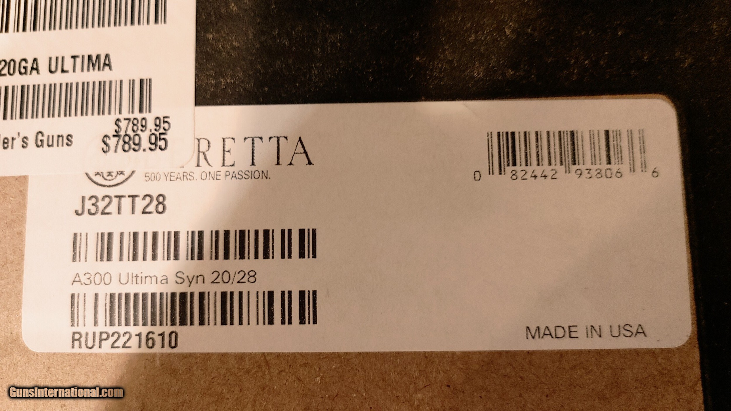 Description: New Beretta A300 20 Gauge 28" barrel 3 chokes adj stock new in box (MODEL:A300 ULTIMA); (ACTION:SEMI-AUTO); (BARREL LENGTH:28); (CAPACITY:3 + 1); (OVERALLLENGTH:47.63); (RECEIVER:ANNODIZED GRAY ALUMIMUM); (SIGHTS:MID BEAD / FRONT FIBER OPTIC); (STOCKFRAMEGRIPS:SYNTHETIC STOCK BLACK SYNTHETIC); (WEIGHT:6.76 LBS.); (CHAMBER:3); (DRILL-TAPPED:FALSE); (SHOTGUN:SHOTGUN) Buyer pays shipping Millers Gun Center Located in New Castle, Delaware "Home of TAX-Free shopping" No Credit Card Fees SOLD Serial Number: RUP221610 |
