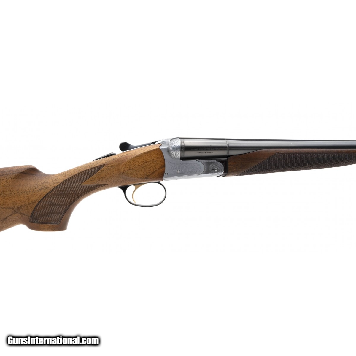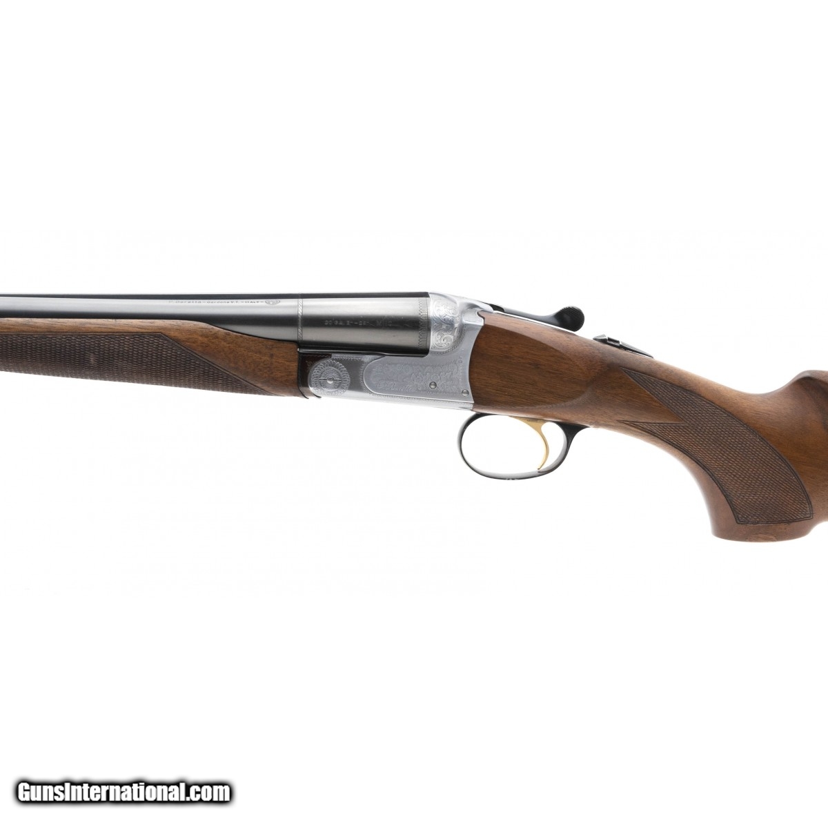 Description: " Side by side field gun with auto ejectors and 26"" barrels choked modified and improved cylinder. Bores are excellent. Length of pull is 14"" with pad. Very good overall condition. SOLD |