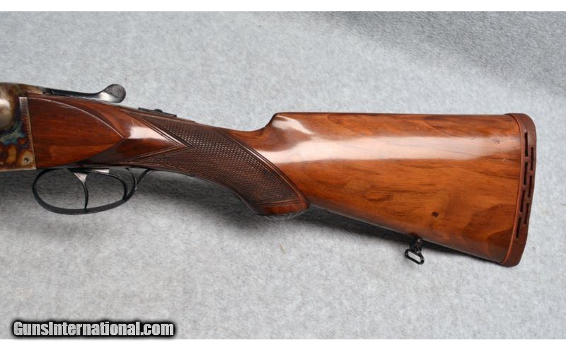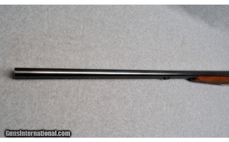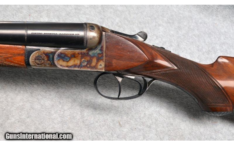 Description: This is a Beretta model 409 Side by side 12 gauge shotgun. The overall condition is quite good. The receiver is case hardened and retains a lot of its color. The wood on the gun has some character marks. The barrels appear to be in very good condition retaining most of their blue. This is a unique shotgun and no too many around with this particular setup. This would make a good addition to a side by side shotgun collection. SOLD Curio/Relic: Yes Manufacturer: 1953 Caliber Info: 12 Ga. Chambers: 3 Inches. Metal Condition: Very good with few handling marks. Wood Condition: Good with handling marks. Bore Condition: Bright and shiny. Barrels: 30 inch matte blued barrels. Triggers: Factory double trigger. Stock: Checkered Walnut with a high gloss finish. Stock Dimensions: 14 1/4 inches. Fore End: Checkered walnut splinter forearm. Butt Pad: Brown Beretta pad showing some dry rot. Weight: 9 lbs 4 oz. Sights: Front ivory bead on solid rib. Chokes: Fixed choke Full / Full Item Location: Hazelwood, MO |