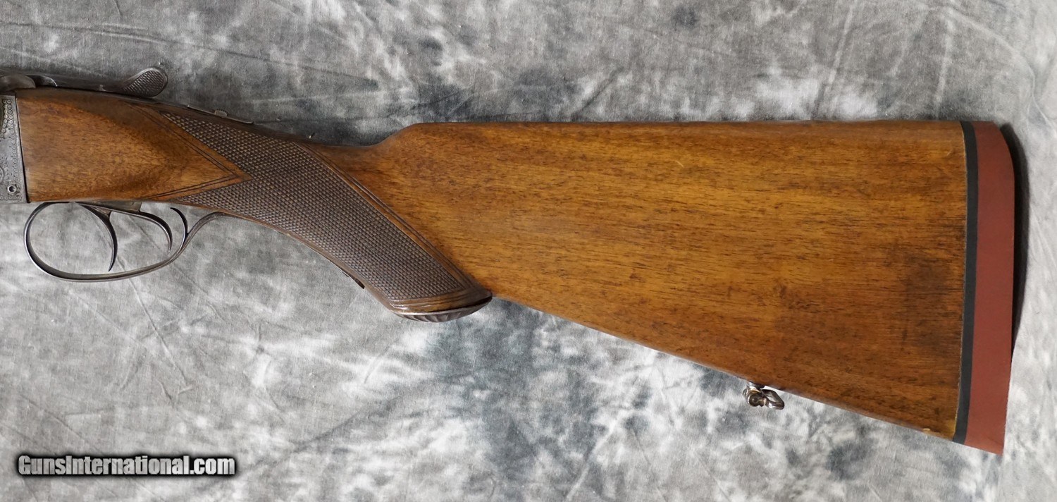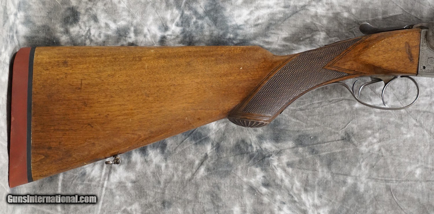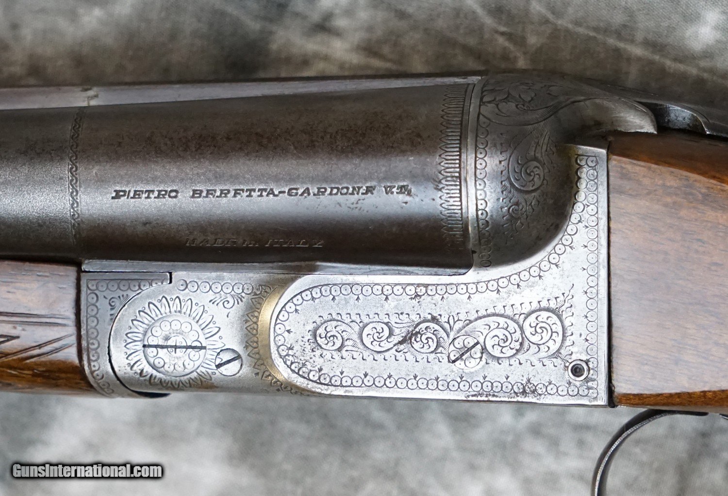 Description: Beretta Model 409 Boxlock side by side field 12GA with 29 1/2" fixed choke (IM/F) barrels, solid filed rib, significant bluing wear on barrels-bores are shiny and in excellent condition, extractors. Boxlock action with scroll engraving, darkening of finish and minor rust damage. Factory double-triggers, pistol grip stock with checking wear, finish wear and handling marks with splinter forearm. Consignment, ineligible for trade-ins. SOLD Shotgun Gauge: 12 Gauge |