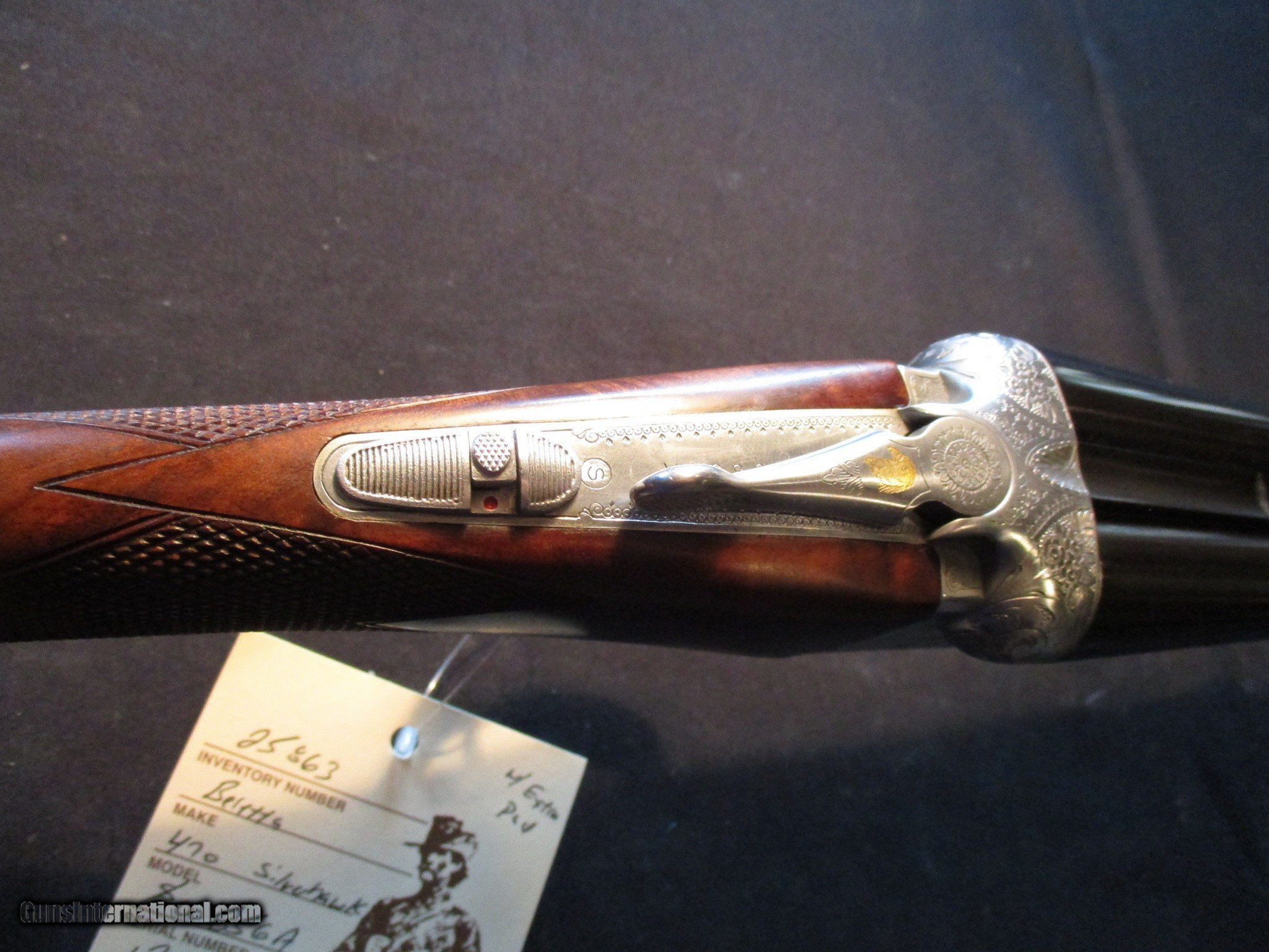 Description: Beretta 470 Silver Hawk 12ga, 28" barrels, Single selective triggers, auto ejectors that can be turned off to manual if you wish. SN is S008xxA. Factory finish on both wood and metal. Comes with 5 Briley chokes in the factory Beretta hard case. Has the factory plastic butt as shown and also has a KickEzz recoil pad fitted. Stock was not cut or altered. Email me if you would like these pics sent to you, they will come through bigger and better than on the listing page here. We do offer Lay-A-Way. Our standard terms are 25% down, 90 days. Initial deposit is not refundable. Email me with any questions. I am a store front dealer, and I will close s if the gun sells locally. Once it has aI will pull it from my shelves. Please check your local laws to confirm it is legal to own in your state! Buyer pays $25 shipping and insurance to your FFL in the lower 48. AK, HI or PR is extra. I will ship to California, NO PROBLEM! All my guns come with a non-firing, 3 day unconditional return privilege, from the day UPS delivers to your dealer. Buyer pays shipping both ways if the gun comes back. I can add a new hard case by PLANO for secure shipping for $25 if the buyer wishes (highly recommended, cheap insurance, really helps keep the UPS monster from eating my guns!). No sales tax on guns ship out of Kansas, guns sold in Kansas are subject to Kansas sales tax. I am a licensed FFL, and will include a copy of my FFL with the gun for your dealer’s records. I will ship to a C&R if the gun is eligible. I will ship to California, but you need to confirm the gun is legal where you are, California or other. WE BUY AND CONSIGN GUNS AND GUN COLLECTIONS! We will travel to pick up collections! I am always looking for good clean, old original Winchesters to buy, consign, or trade, especially Pre '64's model 70's and model 54's. WE ALSO TRADE FOR CLASSIC CARS AND TRUCKS! Email me with any questions, and good luck! SOLD |
