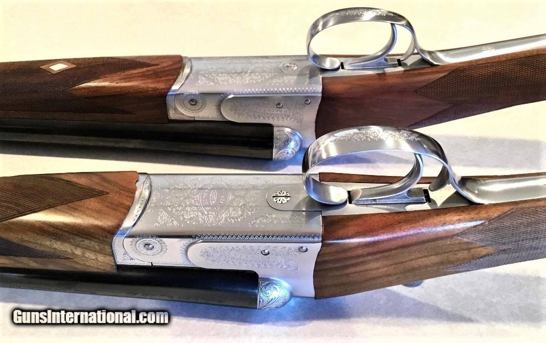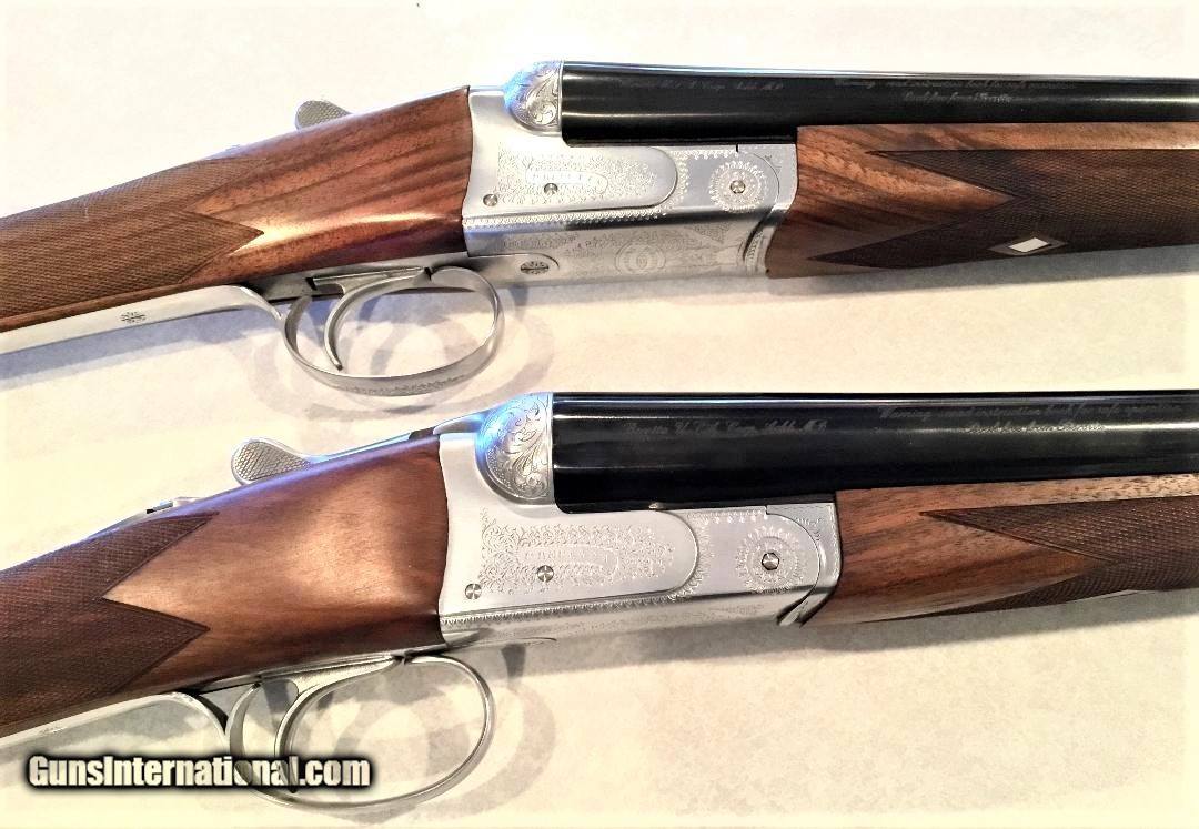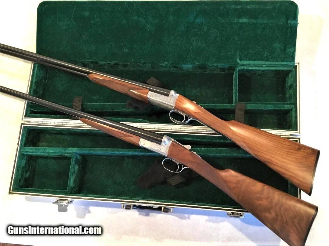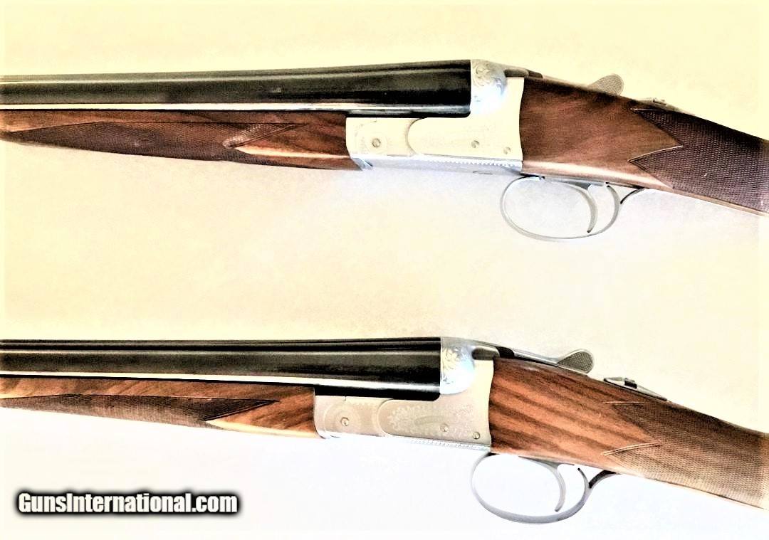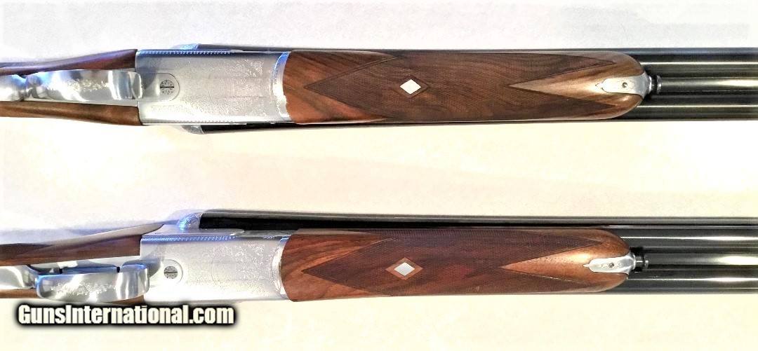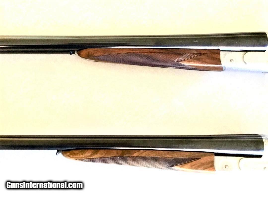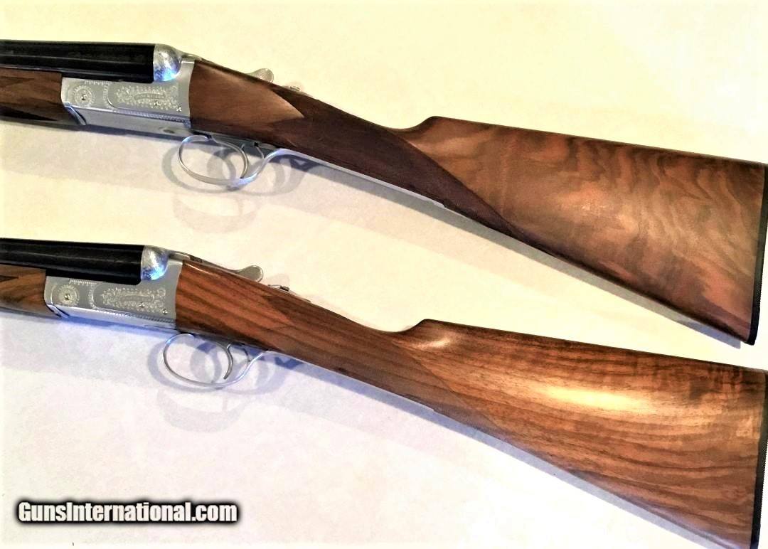 Description: Rare double set Beretta 470 Silver Hawk 12/20 ga Shotguns with Americase ~ 28" Barrels ~ Excellent Condition ~ Beautiful Engraving 12 Ga - Fixed Modifed Full Choke ~ 20 Ga - Improved Cylinder Modified Adjustable Choke ~ No tools or accessories ~ Minimal shooting - estimated usage is a box of shells ~ Comes in a double set Americase with green velvet lining - Missing canvas case cover SOLD Manufacturer: Beretta Model: 470 Silver Hawk Serial Number: 12Ga - #S02664A / 20Ga - #S03322A Bore: Like New Chambers: Like New Ejectors: Yes with cutoff switch Condition: Excellent Overall Metal Condition: Like New Wood Condition: Like New Barrels: 28 Triggers: Single Selective Gauge Info: 12 / 20 Stock: Walnut LOP: 14 1/2 Case: Americase - Missing Canvas Cover |