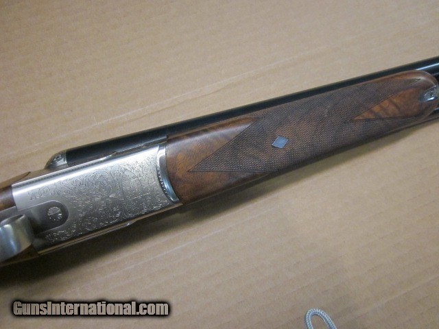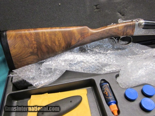 Description: Here’s a pristine Beretta 471 Silver Hawk 12 gauge with 28-inch barrels and English stock. The stock measures 1 3/8” DAC, 2 5/16” DAH and 14 9/16” LOP over a custom leather covered recoil pad. The forend is splinter style and has a selector for ejectors or extractors. The wood shows a lot of figure and it comes in its original blue hard case with 5 mobile choke tubes. The gun has been fired but it is in 99%+ condition. Weight is 7.25 lbs. SOLD |