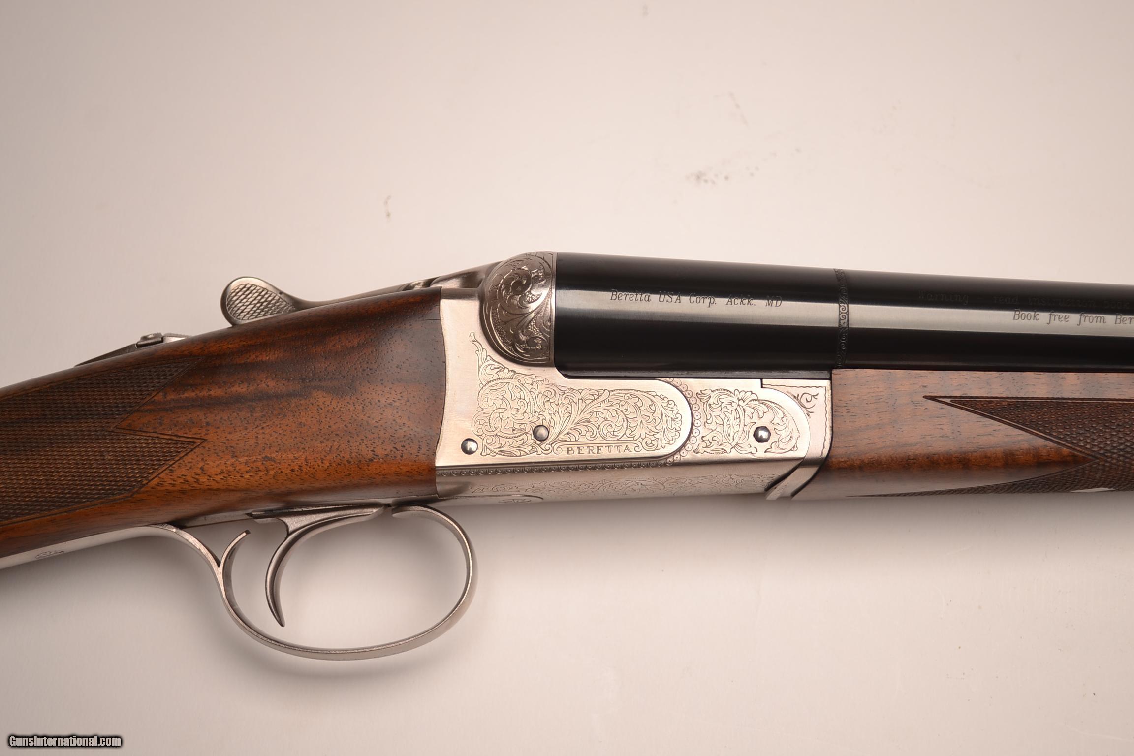 Description: Beretta – 471 Silver Hawk, 12ga, 28” Optima chokes, nicely figured straight grip stock, single selective trigger, splinter forend, scroll engraving over a coined finish receiver, automatic ejectors, single selective trigger, includes case and extra choke tubes, gun remains in excellent condition and appears to have minimal use, available for immediate delivery. Inv# 31516 14 3/8” x 1 ½” x 2 ¼” 7 lbs. 0 oz. $2,750.00 SOLD |
