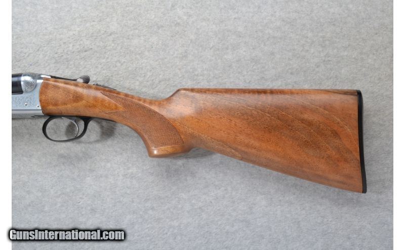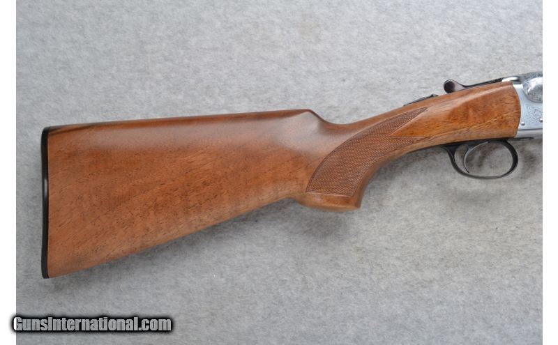 Description: This Beretta Model 626 E Field is a 12 Ga. side by side shotgun with 26 inch barrels in 2 3/4 inch chambers. It has fixed Mod. and IC. chokes. The coin finished reciever is very nicely engraved. In excellent condition it comes in it original box. SOLD Caliber Info: 12 Ga. Chambers: 2 3/4 inch. Metal Condition: Excellent. Wood Condition: Excellent with a couple of minor handling marks. Bore Condition: Very clean, bright and shiny. Barrels: 26 inches with a solid rib. Triggers: Single Stock: Diamond checkered grip walnut pistol grip. Stock Dimensions: LOP 14 inches. Fore End: Diamond checkered grip walnut. Butt Pad: Horizontal grooved black plate. Weight: 6 lbs. 8 oz. Sights: Metal front bead. Chokes: Fixed Mod. & IC. Item Location: Richfield, WI |