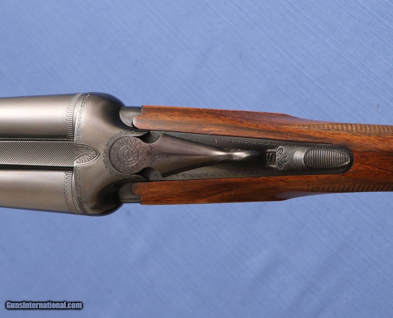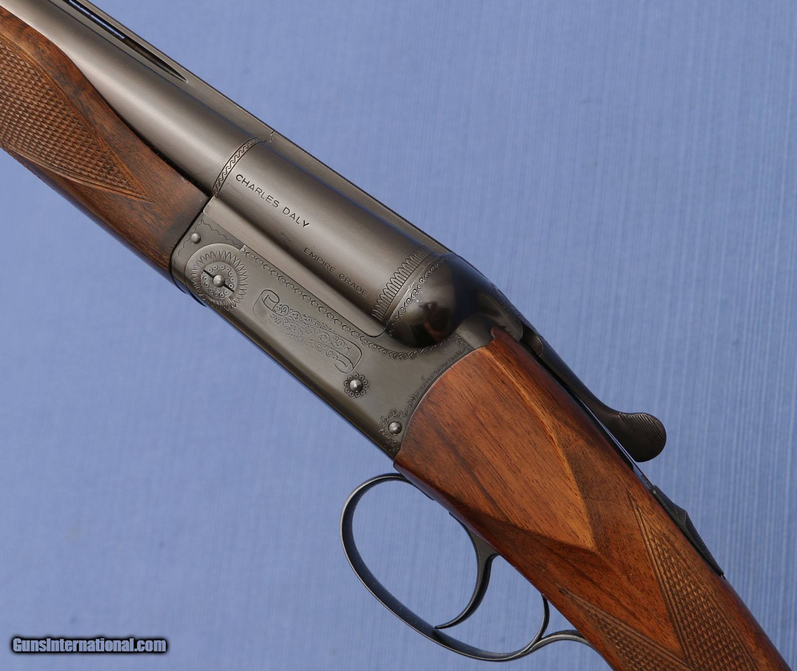 Description: 1967 - Chas. Daly Empire (Beretta Model 424) - 20ga - 28" 3" IM / F (.020 / 033), Vent Rib, Extractors, Automatic Safety, Single Non-Selective Trigger, LOP 14-3/8", Drop 1-1/2" to 2-1/2", Neutral Cast, Weight 6 lbs. 8 oz. Metal is 99+%. Wood has some very minor handling marks.From my personal collection. I've owned this gun for many years. The 42x Series are the best of the Beretta Box Lock SxS Guns.