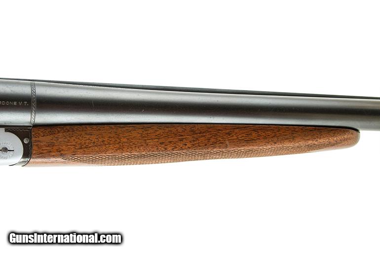 Description: 28' MOD AND FULL 2 3/4 DOUBLE TRIGGER EXTRACTORS SPLINTER FOREARM PISTOL GRIP EXCELLENT WITH LIGHT BLUE WEAR AND LIGHT HANDLING MARKS IN THE WOOD 6LBS 13 OZ X 2 1/2 X 1 1/2 X 14 SOLD |