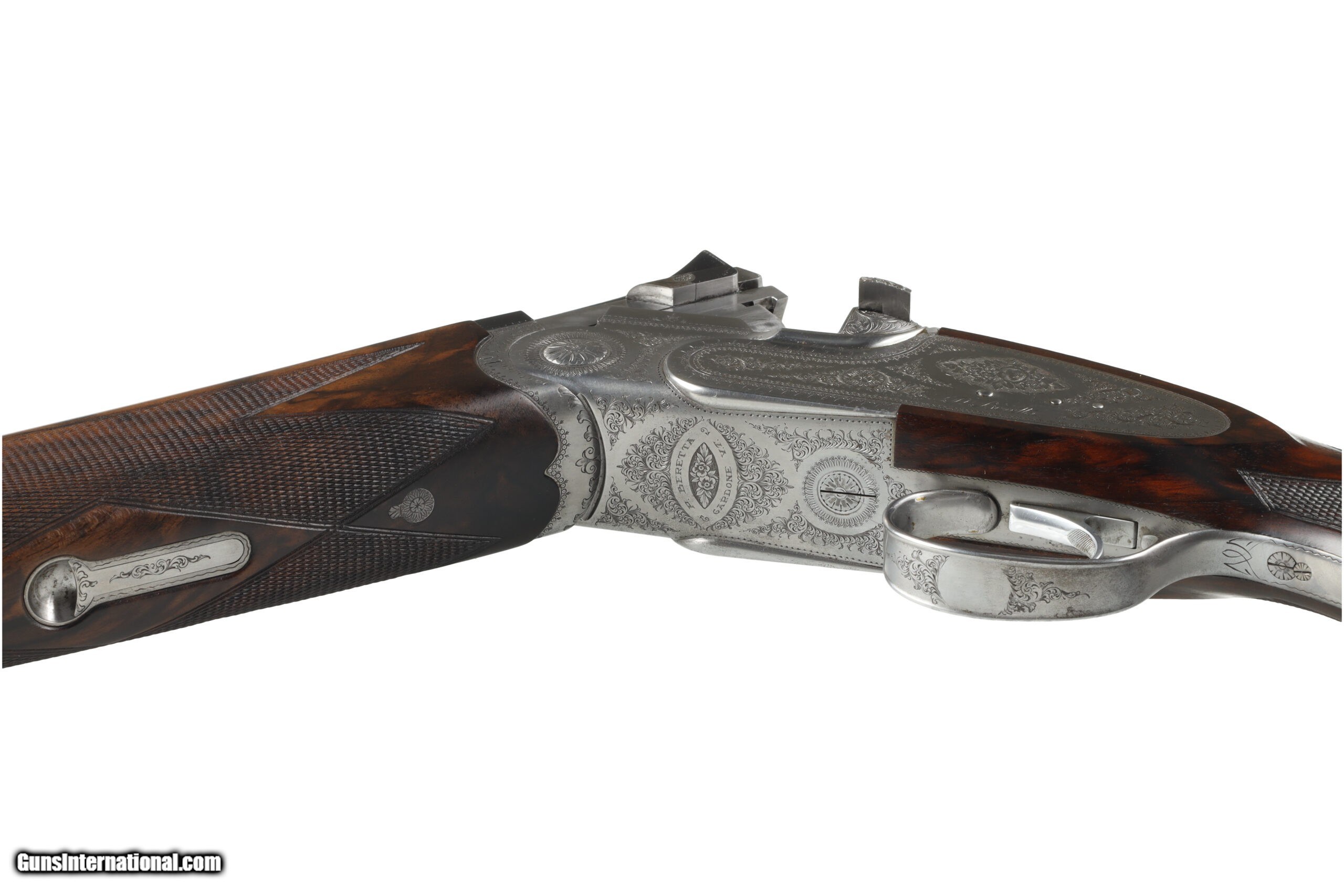 Description: The Beretta S06 is one of the highest end firearms offered by the nearly 500 year old firm, being one of the only truly hand made and fitted firearms they produce. At its base is the remarkably strong cross bolt locking system, still used by the popular DT11 competition shotgun, but combined with this is the hand built artistry of a sidelock action. The sidelocks not only give this shotgun a beautifully crisp mechanical trigger, but act as the perfect canvas for engraving. This used example shows only the lightest of wear and a few handling marks on the stock. This beautiful firearm has also been enhanced, through the addition of Teague choke tubes. Manufactured in: Italy Hand: Right Hand Action Finish: Engraved Metal Finish: Original Barrel Length: 29 1/2 Inches Barrel Condition: Very Good Stock Finish: Original Stock Condition: Excellent Type of Butt: Leather Covered Pad Pad Thickness: 7/8 Inch Grip: Pistol Forend: Checkered Cast Amount: 1/8" Manufacturer: Beretta Model: S06 Chambers: 2 3/4 Ejectors: Yes Condition: Preowned Metal Condition: Excellent Action: Over / Under Triggers: Single Gauge: 12 Gauge Stock Comb: 1 1/2 Stock Heel: 2 3/8 Stock Cast: Off Fore End: Checkered Butt Pad: 7/8 Inch LOP: 14 3/8 Rib: Ventilated Finish: Original Weight: 7.6 lbs Chokes: Teague Choke Tubes Case: Maker's Leather Lugg Price: $10,500.00 Contact Seller |