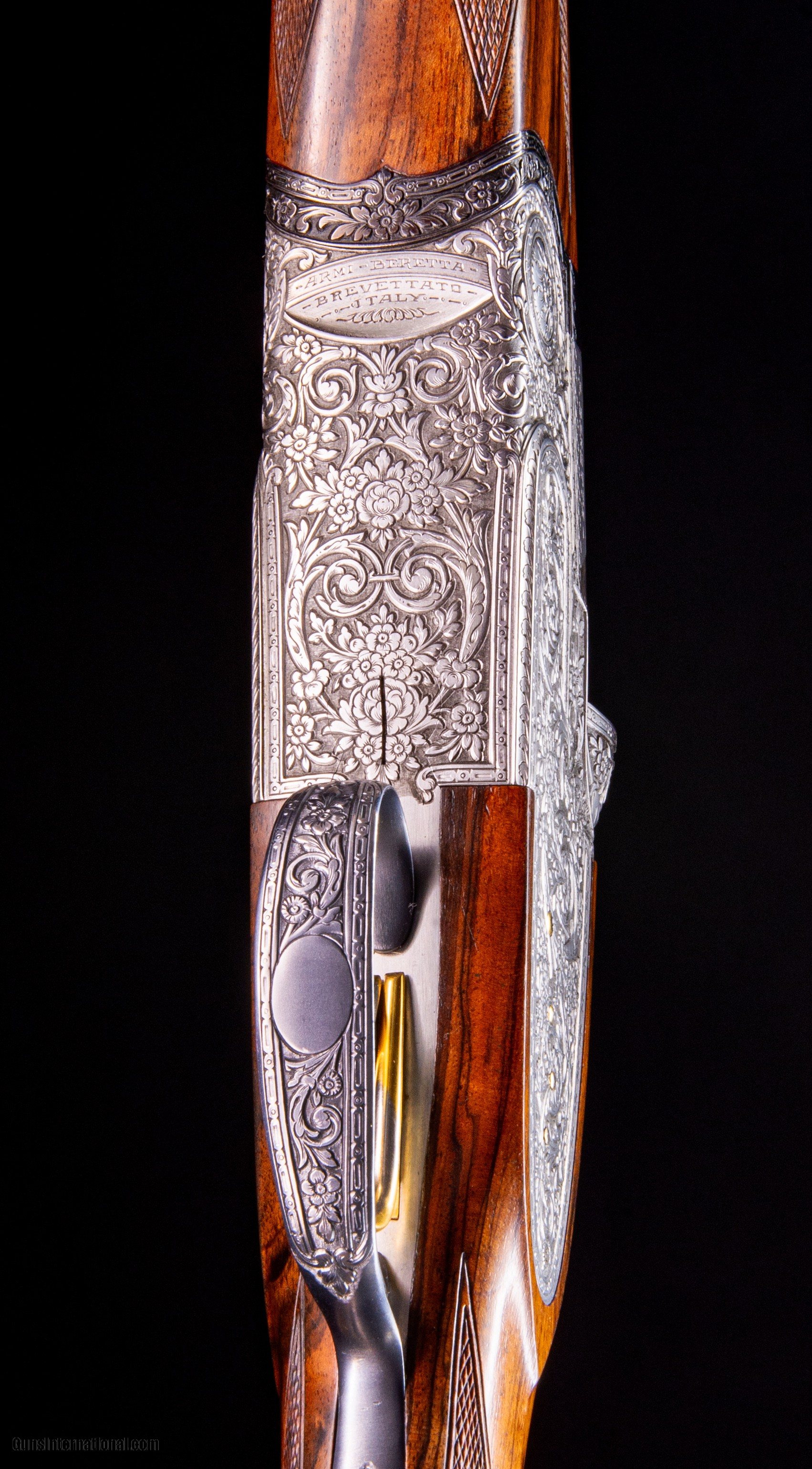 Description: Hammerless Sidelocks - This is quite a nice set. Gun comes cased with Briley insert tubes for 20ga, 28ga and 410ga There are choke tubes for 12ga and 28ga; the 12ga chokes are XFull, Full, Imp. Modified, and Light Mod. 28ga tubes are Imp. Cyl. and Skt.. *An extremely nice 1957 vintage Beretta.