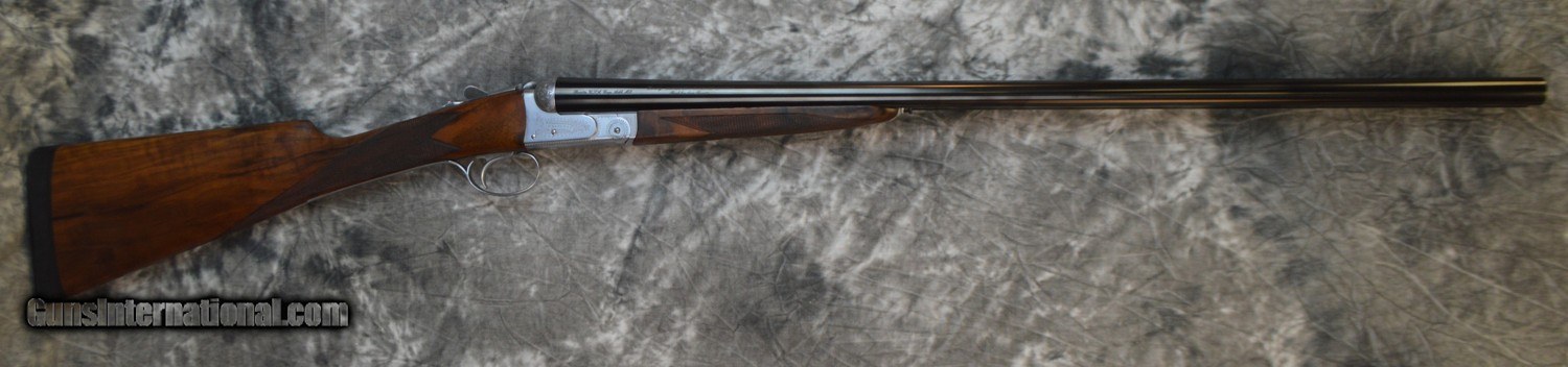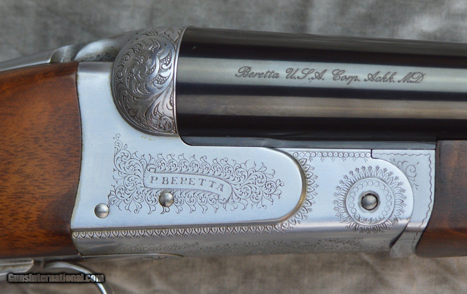 Description: Pre-Owned Beretta Silver Hawk Side by Side Game 12GA with 28" fixed chokes (Opened from IC/M to IC/IC) with factory swamped game rib. Nickel finished action featuring fine English scrolls, Beretta logos. Factory single, selective trigger with ejectors. Very minor bluing wear, English straight hand stock to recoil pad (14 3/8" LOP), splinter forearm. Very minor handling marks on stock and forearm. Includes factory case. SOLD Shotgun Gauge: 12 Gauge |