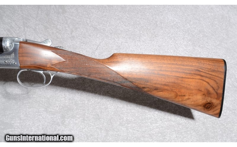Description: The Silver Hawk is a boxlock, in which all the fire-control parts are attached to the action. The receiver is of nickel-chromium-molybdenum steel with an attractive satin-nickel proprietary finish. The receiver's sides have half, false sideplates machined as a part of their contours. Both sides-as well as the underside-feature tasteful, hand-chased scroll engraving. The bolsters, too, have deep scroll engraving, and the nickel trigger guard exhibits modest scroll ornamentation as well. Lock-up is by the proven Purdey double-underlug method-with a slight twist. Beretta angled the lugs slightly to keep the gun tight even as surfaces wear. The lugs are manufactured by electric discharge machining, and the barrels are fused to the monobloc with a laser-making this classically styled side-by-side utterly modern in its manufacture. The surfaces of the breech face and receiver under the barrels are jeweled. The barrels are cold hammer forged, and the 3-inch chambers are chrome-lined. Beretta's interchangeable Optima chokes came with our sample, and the 2 3/4-inch-long tubes feature an elongated cone for the choke constriction. The exterior bluing of the barrels is smooth and even. 20 Gauge SOLD Chambers: Break Action Side/Side 2 3/4" - 3" Shells Metal Condition: Excellent with Engraving on the receiver Wood Condition: Excellent European Walnut Bore Condition: Excellent Barrels: 26 Triggers: Selectable Trigger Stock Dimensions: "14 3/8"" LOP, 11/4""DAC, 2"" DAH, 3/8"" Cast Off Fore End: Fine European Walnut with Fine diamond Checkering Butt Pad: Beretta Plastic Butt Plate Weight: 6 1/2 lbs Sights: Silver Front Bead on Low Rail Chokes: 3 Chokes Item Location: Tulalip, WA |