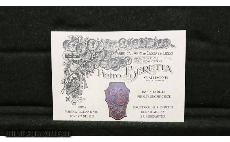 Description: Pietro Beretta model EELL Jubilee Composed Pair 12 Gauge Metal Condition: Very Good Wood Condition: Very Good Bore Condition: Very Good Barrels: 28 Inch Triggers: Factory Stock Dimensions: 15 Inch LOP Fore End: Checkered Wood Butt Pad: Recoil Pad Weight: 7 lb Sights: Single Front Bead Chokes: Improved Cylinder and Improved Modified Item Location: Mitchell, SD Price: $19,999.99 Contact Seller |