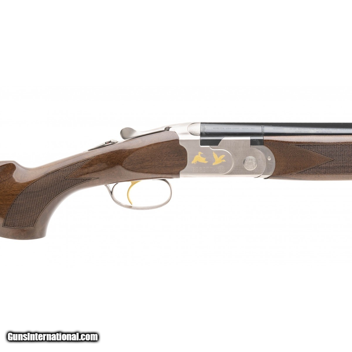 Description: " SN: 0914DU2009. Ducks Unlimited special edition over/under field gun with 28"" barrels and gold inlaid game scene. LOP is 14.75"". Excellent condition with case, extra choke and accessories. SOLD |