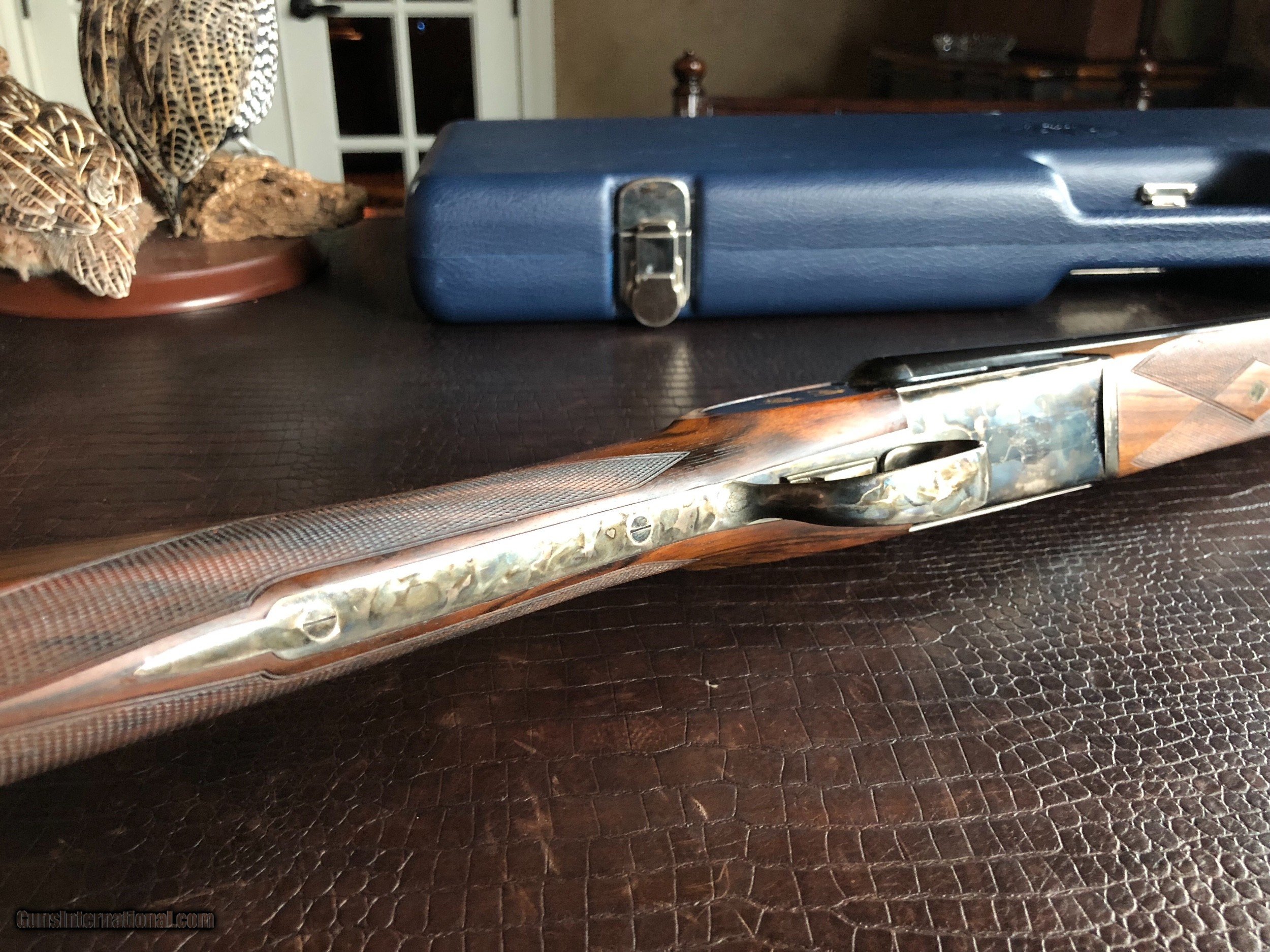 Description: *****SOLD PENDING SHIPMENT***** Beretta SO 471 EL - 20ga - 28” - Mobil Chokes - in Maker’s Case with Accessories - 14 3/4 X 1 5/16 X 2 X 6 lbs 10 ozs - SN: SO6253A - Spectacular Special Order Wood - Color Case - Checkered Wood Butt Plate - Single Trigger - RARE gun in Remarkable Condition. Screw in chokes make this little SXS very versatile to fit all hunting and shooting needs. *****SPECIAL NOTE***** 1. I am a reasonable man – I encourage you to make reasonable offers on my listings. At times, there is some flexibility in pricing – other times there is not. I have been collecting guns since 1988 – so I have amassed quite a covey of what I consider to be some very fine guns and some utility guns. Feel free to call me, unlike most gun dealers – I am easy to talk to and will answer the phone on weekends and late evenings (not after 9PM CST). 2. I DO NOT ACCEPT TRADES 3. I do provide LAY-A-WAY plan, please inquire about my terms if you have a need – glad to do it when I can. 4. My collection consists of many guns that were bought from individuals – that means **I BUY GUNS** but I only buy clean used guns with collectibility. In particular - **I BUY SHOTGUNS** 5. ALL OF MY TRANSACTIONS ARE DONE THROUGH MY FFL with whom I have a very solid relationship. If you buy a guns from me, you’ll pay them, they will ship to your FFL of choice and all dealings will be with them post receipt of funds. They are a high end boutique gun dealer in the Texas Hill Country and can accommodate the entire transaction. If you live in Texas and want to drive to see one of my guns, reach out to me to discuss making an appointment with my FFL – I do not show guns at my home nor do I meet guys at public locations for viewings or sales. ALL GUNS ARE LEGALLY TRANSFERRED through my FFL – there are NO EXCEPTIONS. 6. Certified funds are preferred – if you send a personal check for payment the FFL ships one week after receipt. Certified funds payments – shipments are done next business day. NO CREDIT CARD payments are accepted. 7. I encourage you to shoot the guns you buy from me – so during your 3 day inspection – shoot the gun. Make sure it is operating in the manner you expected. If you are not happy – return the gun for a full refund except shipping costs SOLD |