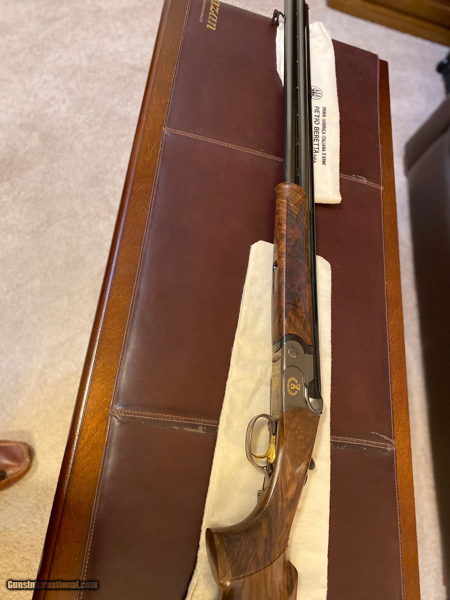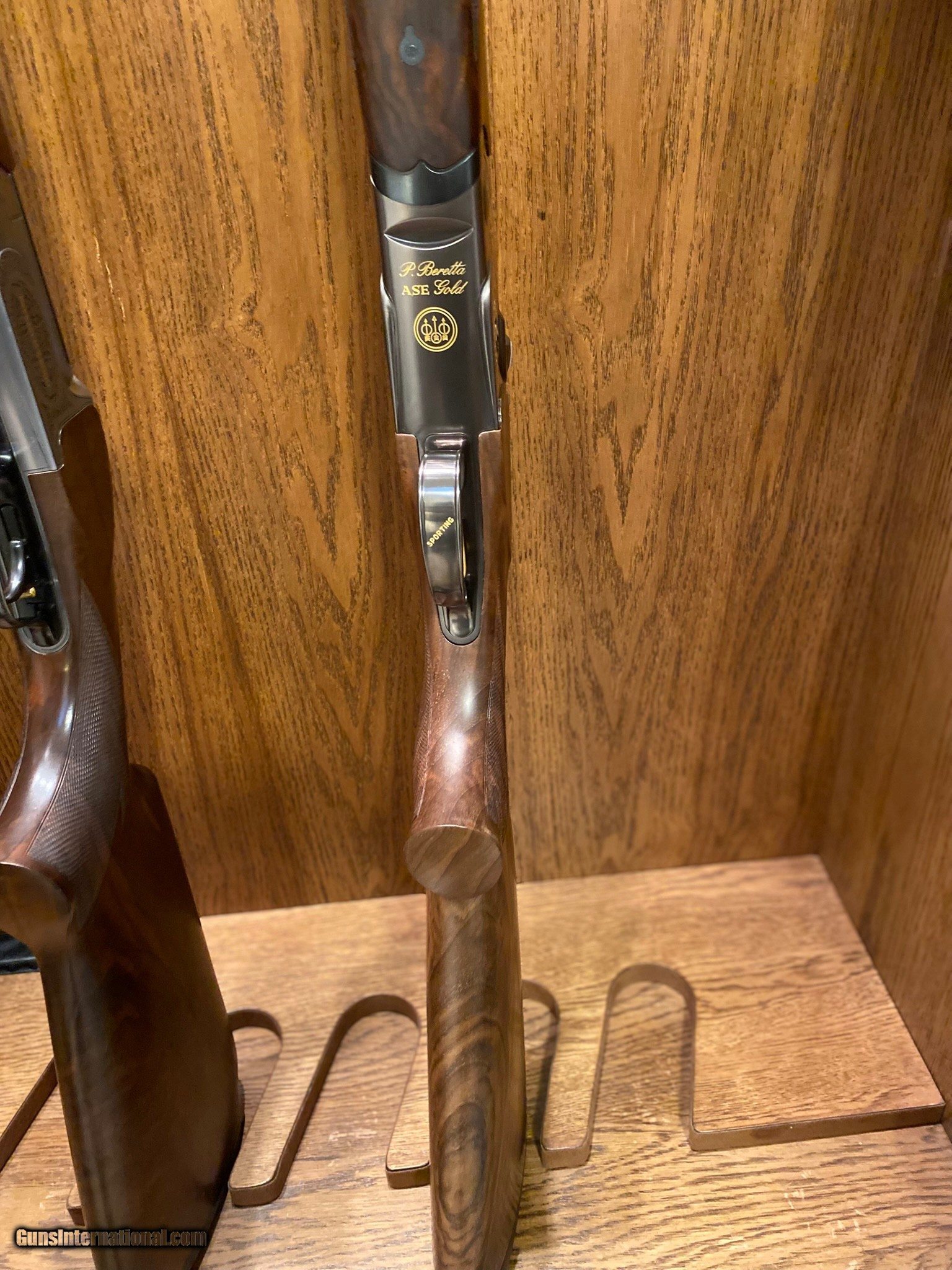 Description: Here is a Beretta ASE Gold Sporting 12 gauge shotgun. The gun Is in excellent condition with all original accessories and paperwork. It has 29 1/2 in barrels with Mobile chokes and comes with both extended and flush chokes. This is a 1997 made gun and these guns were made in the "Due" factory of Beretta along side the SO5's, Beretta's Permium line of shotguns. This gun is mostly hand made. The demensions are DAC 1 1/2, DAH 2 1/4 LOP is 14 1/4 -14 1/2 inches with two Beretta recoil pads. Right Handed stock with slight palm swell. It has a dropout selectorable single trigger with adjustable trigger shoe. This is a high quality gun with 18.4 bore Boehler Antinit barrels. These guns were producted between 1992-1997 and have one trigger group, the ASE's came with two trigger groups and were made for the 1990 Olympics. Comes in its original case. Thank you for lookin and remember it is always "GO TIME"!!!! $6597.00. No sales to CA, HI, AK or where prohibited. SOLD Shotgun Gauge: 12 Gauge Manufacturer: Beretta Model: ASE GOLD Barrel Length: 29 1/2 inches Bore: 18.4 Ejectors: Yes Condition: Excellent Metal Condition: Excellent Wood Condition: Excellent Bore Condition: Bright and Shiny Stock Cast: Slight right hand LOP: 14 1/4- 14 1/2 Weight: 8.3 pounds Manufacture Date: 1997 Chokes: Multi Proof:Nitro: Yes |