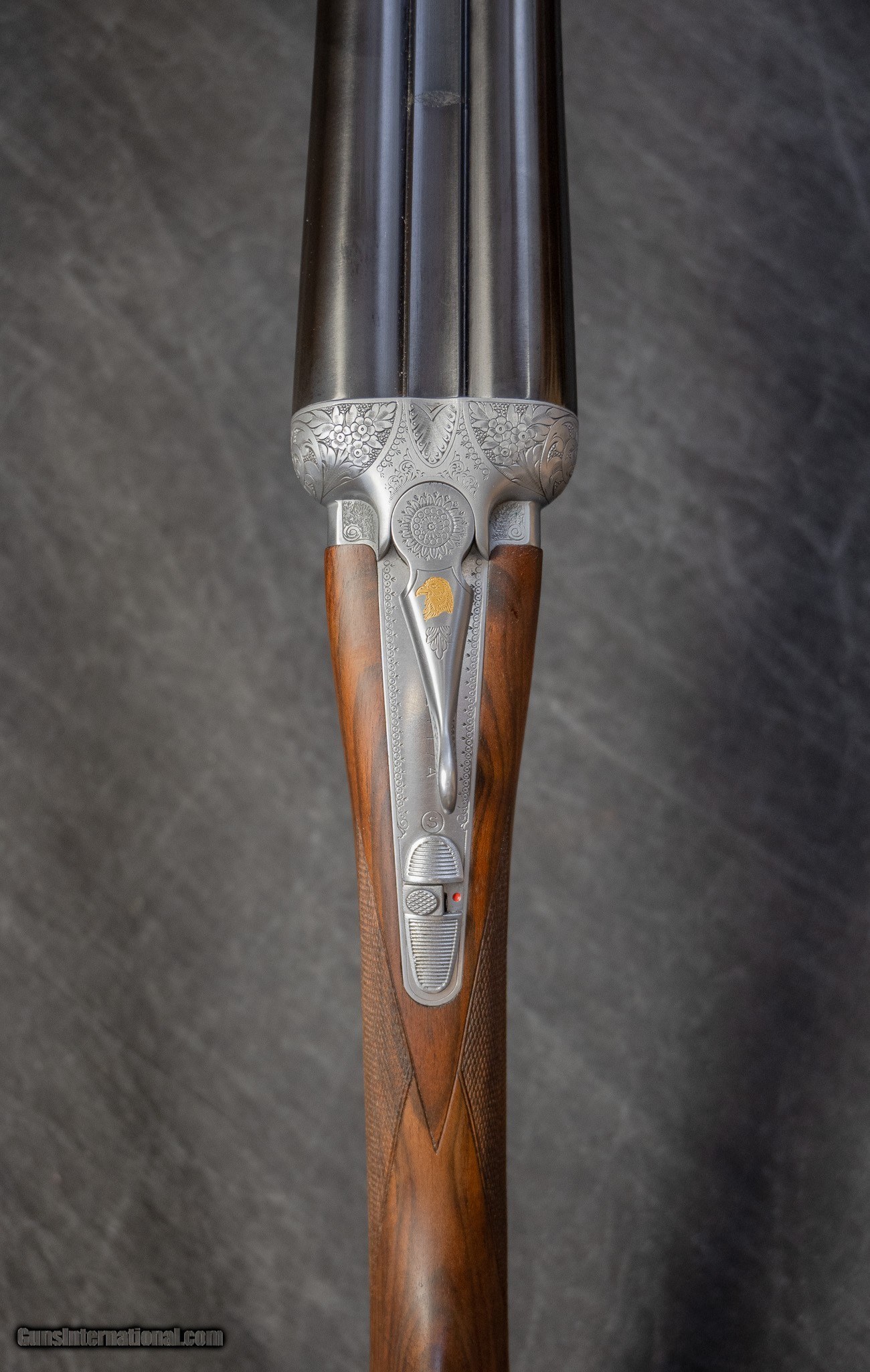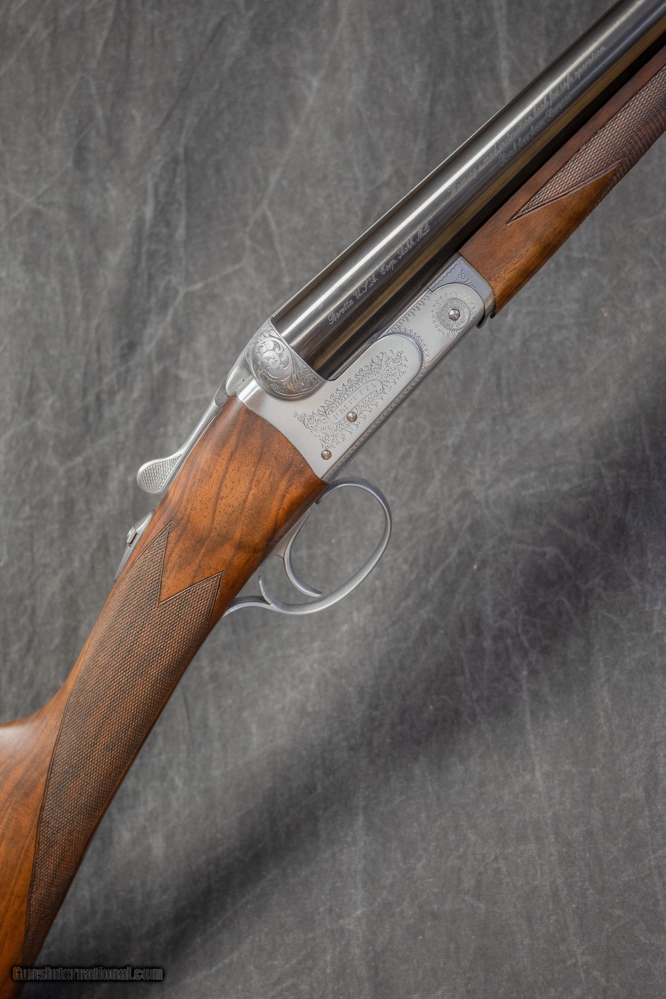 Description: Specifications Maker: BERETTA Model: 470 SILVER HAWK Gauge/Caliber: 12 GA Barrel Length: 28" Chambers: 2 3/4" & 3" Rib Design: SMOOTH CONCAVE Weight: 6lbs. 10ozs. Bore/Chokes Right/Bottom: .727/ .024/ MOD Left/Top: .727/ .039/ FULL Stock Dimensions Drop At Comb: 1 716" Drop At Face: 1 7/8" 4 1/2" Cast At Face: 1/16" OFF 41/2" Cast At Heel: 1/8" OFF Length Of Pull: 14 1/2" Pitch: 2 1/2" 5 DEGREES Special Features: SATIN CHROME FINISH SCROLL ENGRAVED RECEIVER SINGLE SELECTIVE TRIGGER EJECTORS AUTO SAFETY NICELY FIGURED STRAIGHT GRIP STOCK W/ BERETTA BUTT PLATE SPLINTER FOREARM MAKER'S HARD CASE MADE IN ITALY CONDITION: EXCELLENT Circa: 1998/ SERIAL # S024017A Number: C9590 SOLD |
