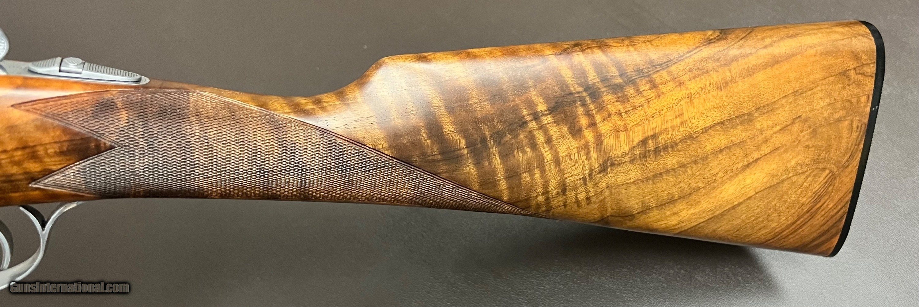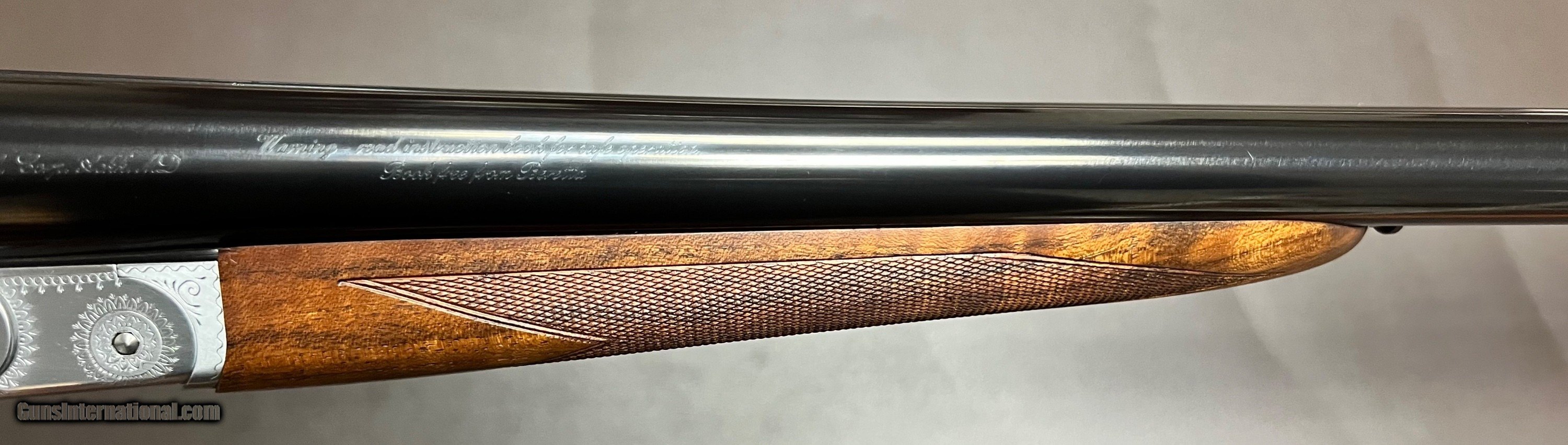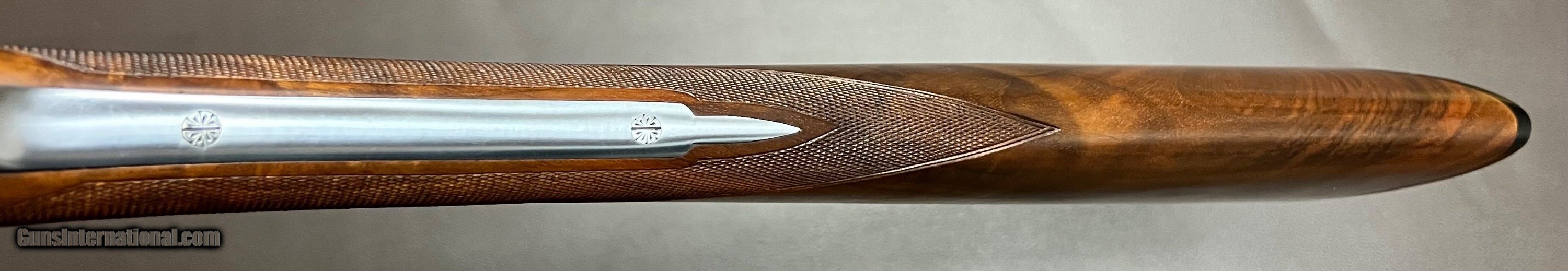 Description: Beretta 471 Silverhawk 12GA 26" ejector game rib barrels with single front bead 3" chambers Chokes: .012/.020 IC/M barrels marked IC/M Bore measurements: .724/.724 proofed at .724/.724 unaltered original bores Lockup is tight as new Bore condition is excellent/as new Single selective trigger Highly figured oil finished straight grip stock with splinter forend LOP 14 1/2" over beretta buttplate DAC 1 3/8 DAH 2 3/8 Cast off 1/4" for right hand shot 6lbs 8oz Balance point is just in front of the hinge for a perfect swing Built in 1999 BM date code No box or paperwork Excellent as new unfired condition with some of the best wood I have seen on a Silverhawk in the hard to find straight grip stock configuration, stunning top quality Beretta upland SxS. Shotgun Gauge: 12 Gauge Price: $4,250.00 Buy Now Contact Seller |
