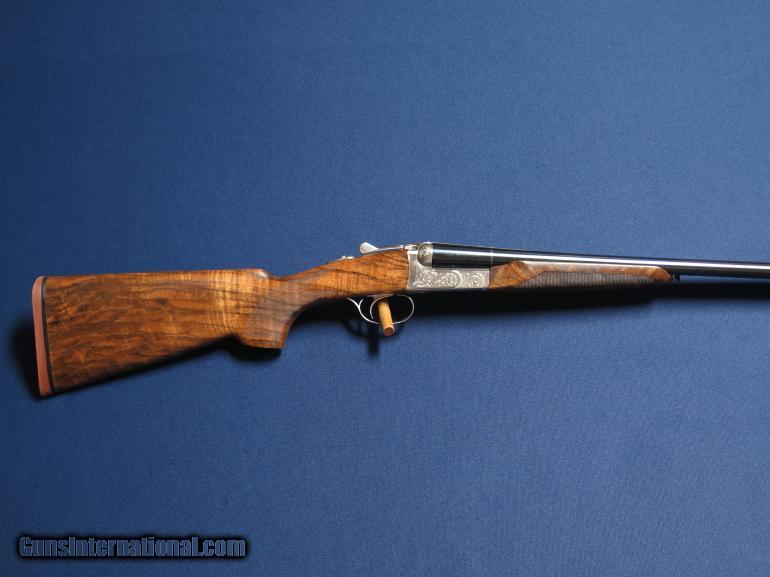 Description: Beretta 471 Silverhawk 20ga. 28" barrels. 5 screw chokes. Single selective trigger. Automatic ejectors. Special order upgraded wood. Beavertail foerarm. 14 3/8 LOP 1/2 pad. Coin finish receiver. 98-99%. With case and accessories. SOLD |