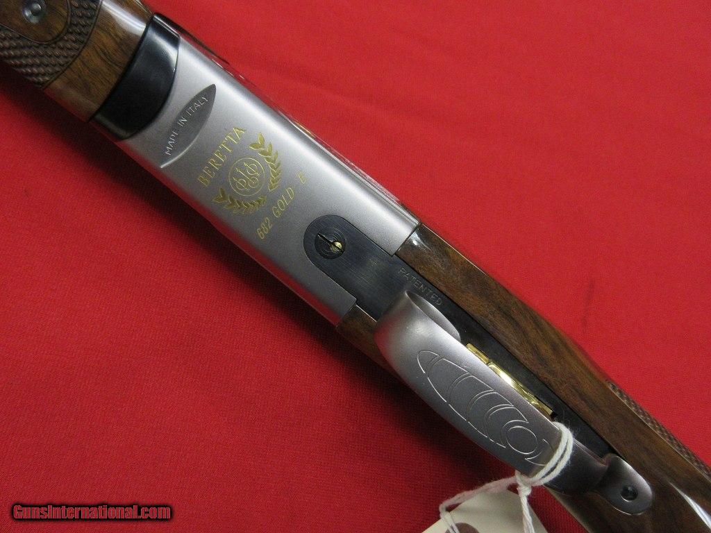 Description: Beretta 682 Gold E 12ga 32"/34"Trap Combo Optima Chokes (USED)-- Factory adjusable comb system has been replaced and upgraded by Dave Berlett, Jones syle adjustable buttplate with Kick-EEZ pad. This gun remains in very good condition overall with a small hairline crack behind the safety. comes with the factory case, five flush choke tubes, and the spare parts kit. SOLD |