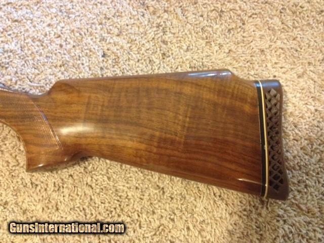 Description: Classic Beretta trap gun in 12 gauge with fixed chokes. The 32" double barrell is choked F/IM and the 34" single barrel is choked F. This gun is in very good condition both wood and metal. The stock is slightly cast off and the drop at comb is 2 1/4". The LOP is 14 1/2" to a Beretta pad and the trigger is adjustable. SOLD Manufacturer: BERETTA Model: 682 Gold X Serial Number: E84910B Chambers: 2 3/4 Ejectors: yes Condition: 90-95% Metal Condition: excellent Wood Condition: excellent Bore Condition: clear Barrels: 32" O/U, 34" S Action: break Triggers: single selective Gauge Info: 12 Stock: Monte Carlo trap Item Location: Meridian, ID |