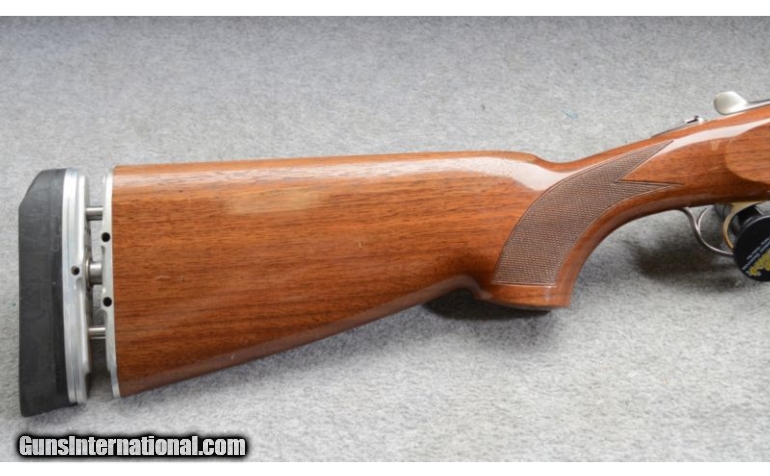 Description: SOLD Caliber Info: 12 Gauge Chambers: 3 Inch Metal Condition: Excellent, minor handling marks. Wood Condition: Excellent, minor handling marks. Bore Condition: Bright and shiny Barrels: 28 inch Triggers: Single selectable gold trigger Stock: Checkered walnut with pistol grip Stock Dimensions: 14 - 3/4 Inch LOP Fore End: Checkered matching forearm Butt Pad: Soft rubber pad and recoil system Weight: 8 lbs Sights: Ventilated rib with silver beads Chokes: Screw-in interchangeable chokes Item Location: Rogers, MN, MN |