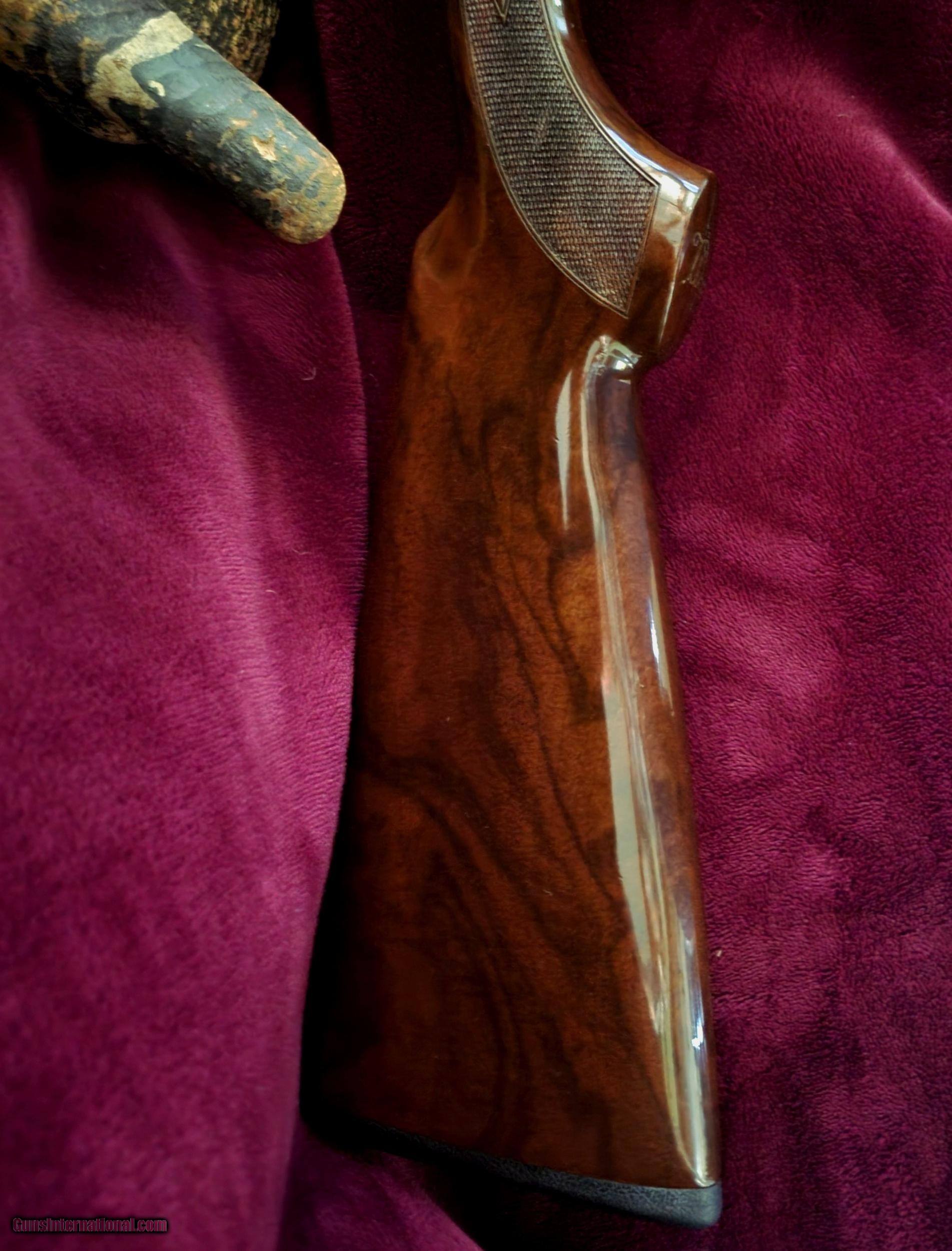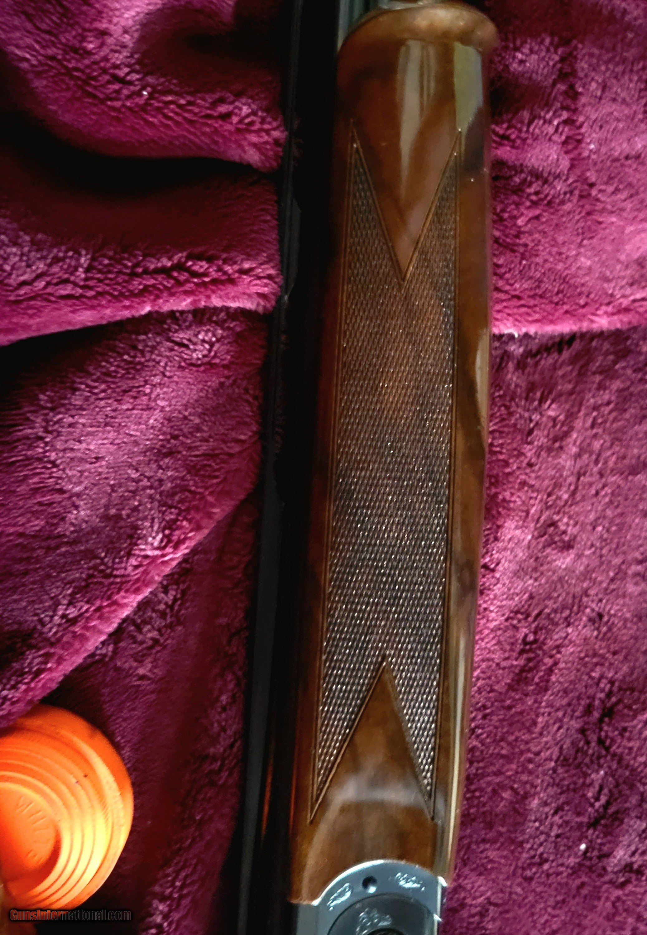 Description: +++SOLD to Walt in MD+++ This Beretta 686 Onyx has XtraWood as highly figured. The Serial Number on all parts matches (QU000500) and appears as last manufactured example. These desirable guns make great collector or upland/range guns. This example is very tight wgen breached, showing vert little use. The stock has only very few handling marks that are hard to detect. All metal and bores reflects as new. Please contact us with any questions. SOLD Shotgun Gauge: 28 Gauge Manufacturer: Beretta Model: 686 Onyn, QU Serial Number: QU000500 Bore: Mirror and Bright Chambers: 2 3/4in Ejectors: Yes, strong Condition: Excellent Metal Condition: Excellent Wood Condition: Excellent Bore Condition: Mint Action: Break Action, O/U Triggers: Single Select Stock: Well Figured Walnut, FKLT Stock Dimensions: 14 1/2in Stock Cast: Cast Off 1/4, for RH Shooter Fore End: Schnable - field Butt Pad: Factory LOP: 14 1/2 inches Rib: Ventilated 6mm Finish: Gloss Weight: 6lbs, 6oz Chokes: Multi - Flush mount Engraving: Quail Unlimited Case: Factory hard case |