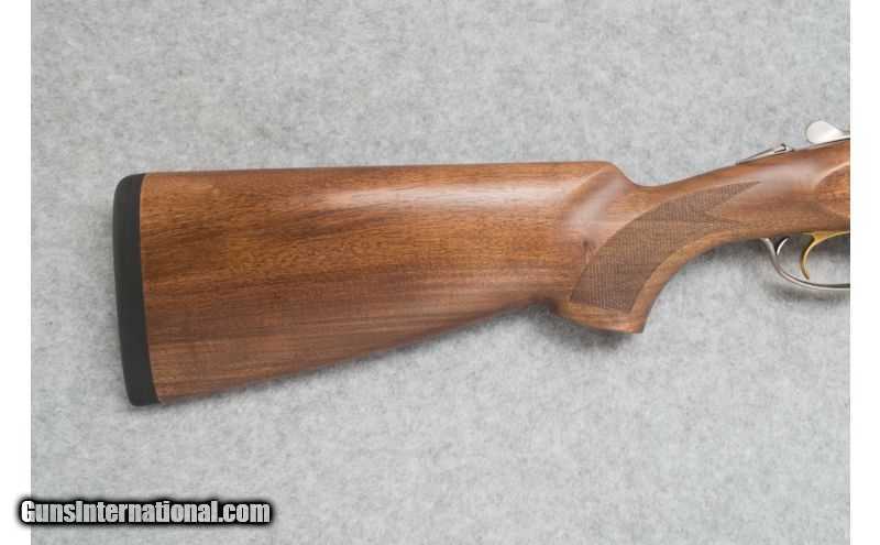 Description: Used. Looks like new! SOLD Caliber Info: 12 Ga. Chambers: 3 Metal Condition: Excellent Wood Condition: Excellent Bore Condition: Clean and bright Barrels: 28 Triggers: Smooth gold plated; single selective Stock: Checkered pistol grip walnut Stock Dimensions: LOP - 14 3/4 Fore End: Checkered walnut; Schnabel style Butt Pad: Black rubber pad Weight: 7 lbs. 8 oz. Sights: Silver bead front Chokes: Choke tubes Extras: Hard case; (5) chokes and accessories. Item Location: Sun Prairie, WI |